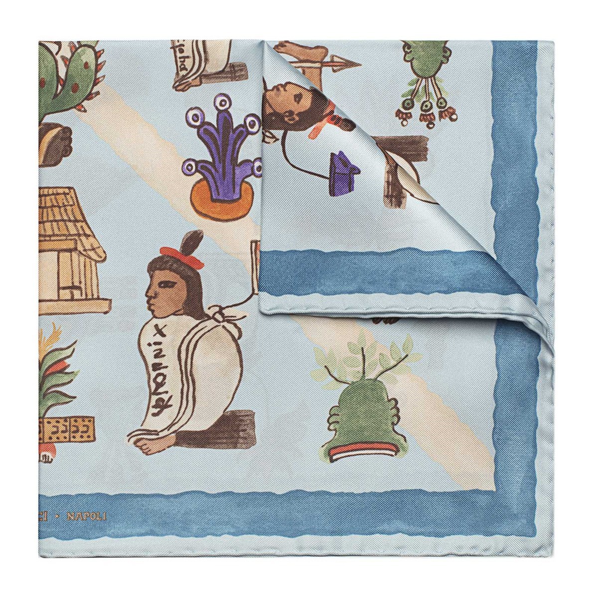 This pocket square is not just a fashion statement; it represents the legacy of Antonio de Mendoza, the first viceroy of New Spain, who commissioned the codex to provide insights into the Aztec empire. Its intricate patterns echo the traditional pictograms used by Aztec scribes, making it a conversation piece that tells a story of exploration and artistry.