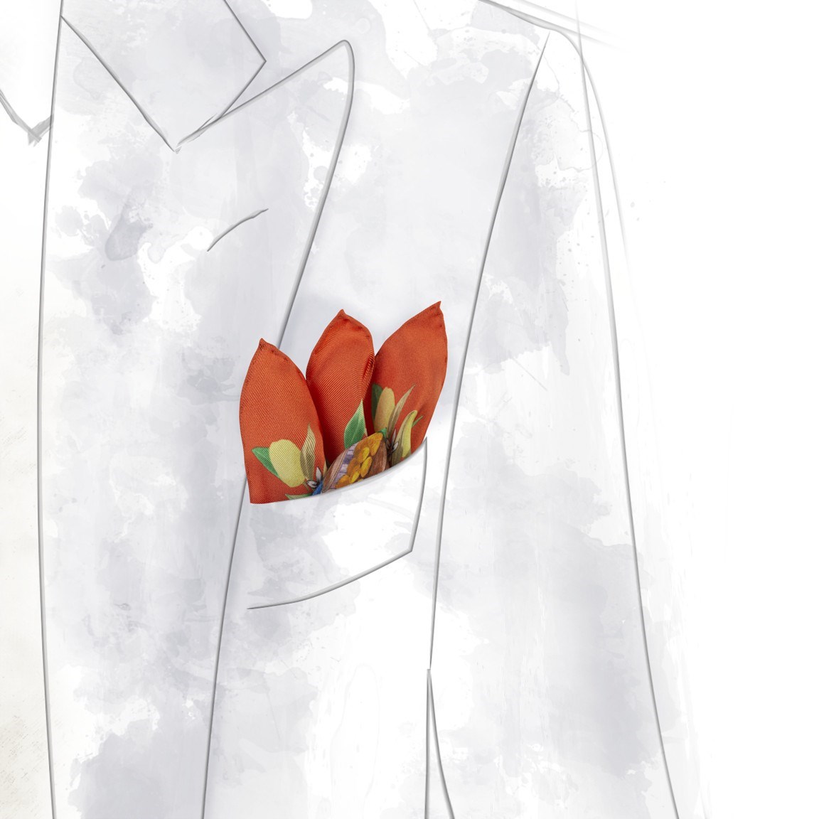 Whether you're attending a formal event or seeking a statement piece for a casual outing, the Orange Fresh Water pocket square is the perfect accessory to elevate your style while celebrating the vibrant culture of Naples.