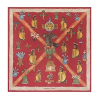 Inspired by the Mendoza Codex, a significant Aztec manuscript created in 1540, this pocket square pays homage to the artistry and culture of Mesoamerica. The vibrant red hue symbolizes strength and passion, making it an ideal companion for both casual outings and formal events.