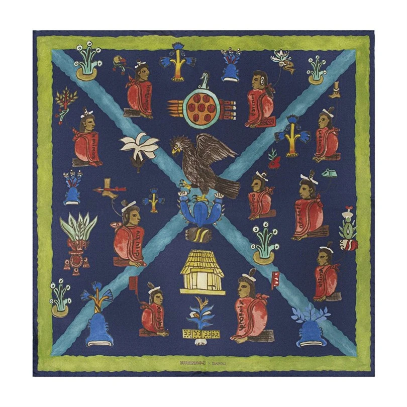 The design of the scarf draws inspiration from the Mendoza Codex, an important Aztec manuscript created in 1540 that provides invaluable insights into the life and culture of the Aztec empire. This unique connection to history adds depth and meaning to the piece, making it more than just a fashion accessory—it's a celebration of rich heritage.