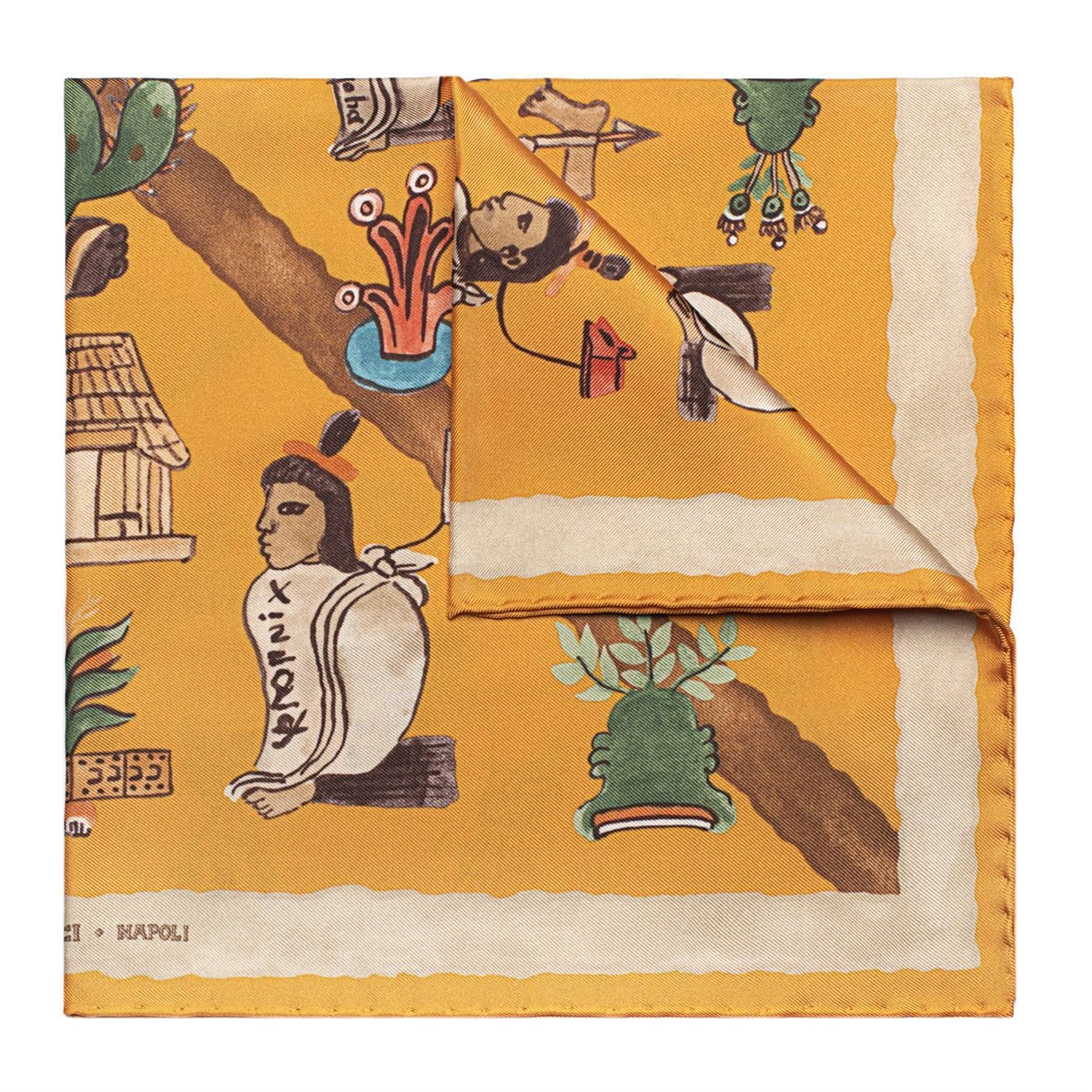 Each scarf is meticulously hand-edged, ensuring that it is not just an accessory, but a statement piece that reflects sophistication and elegance. Perfect for both casual and formal occasions, this scarf can be styled in various ways, making it a versatile addition to your collection. Embrace the legacy of the Aztecs and elevate your style with the Ocher Mendoza Scarf.
