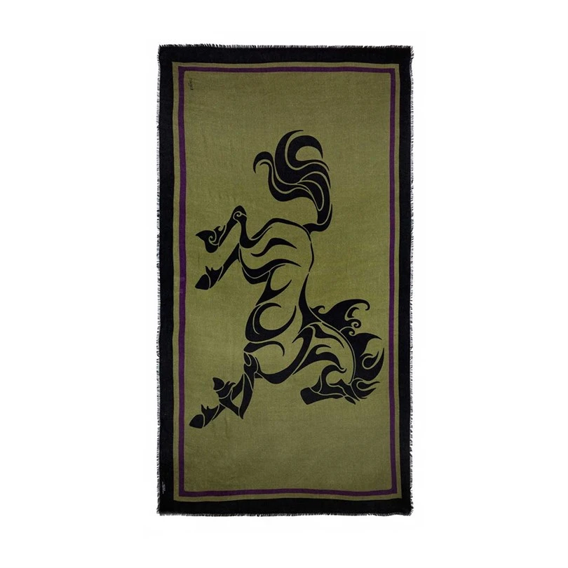 Designed with versatility in mind, the Military Green Horse Scarf is wider and longer than traditional scarves, allowing for multiple styling options. Whether you choose to wrap it around your neck for added warmth or wear it as a chic shrug over your shoulders, this pashmina effortlessly enhances both casual and formal outfits.