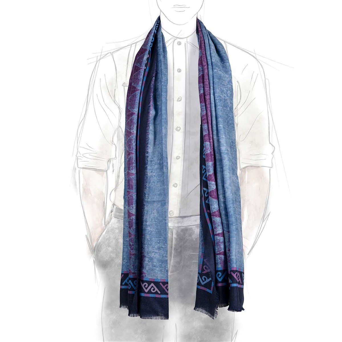 Minorca scarf in jeans cashmere