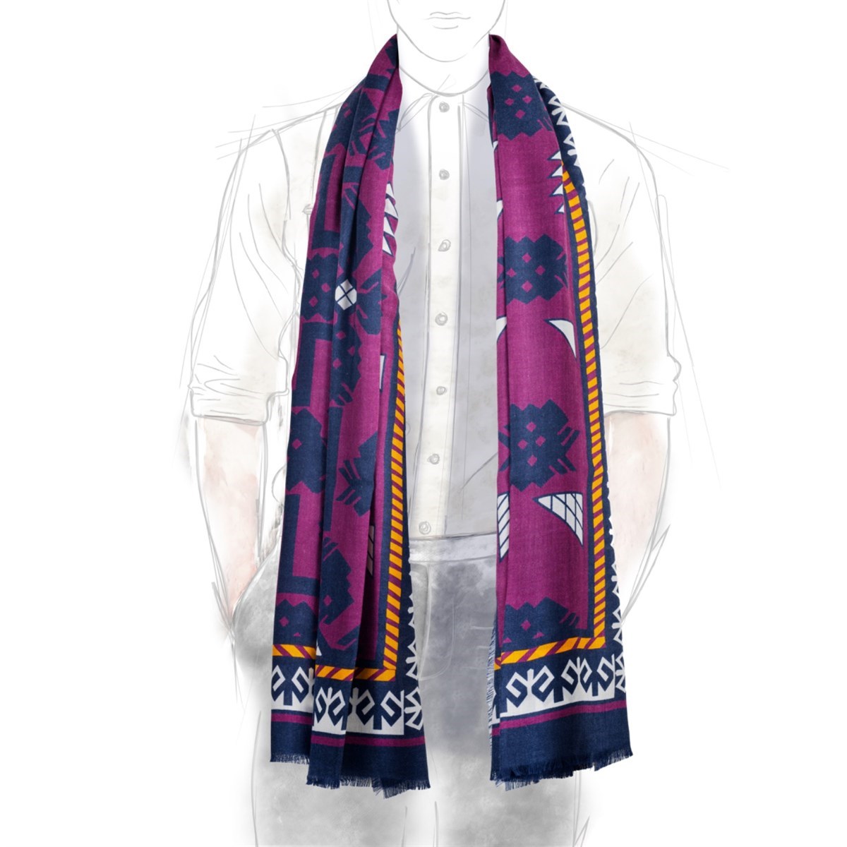 To maintain the scarf's pristine condition, we recommend hand washing or gentle dry cleaning. Avoid bleach, tumble drying, and ironing to ensure the fabric retains its luxurious texture and vibrant color. Ideal for both casual and formal occasions, the Violet Tile Scarf is not just an accessory; it's a statement piece that adds a touch of elegance and personality to your look. Embrace luxury and versatility with this must-have fashion staple.