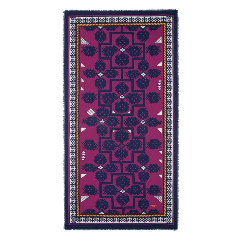 To maintain the scarf's pristine condition, we recommend hand washing or gentle dry cleaning. Avoid bleach, tumble drying, and ironing to ensure the fabric retains its luxurious texture and vibrant color. Ideal for both casual and formal occasions, the Violet Tile Scarf is not just an accessory; it's a statement piece that adds a touch of elegance and personality to your look. Embrace luxury and versatility with this must-have fashion staple.