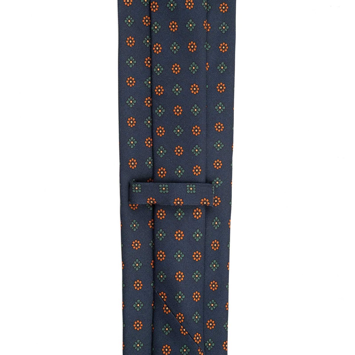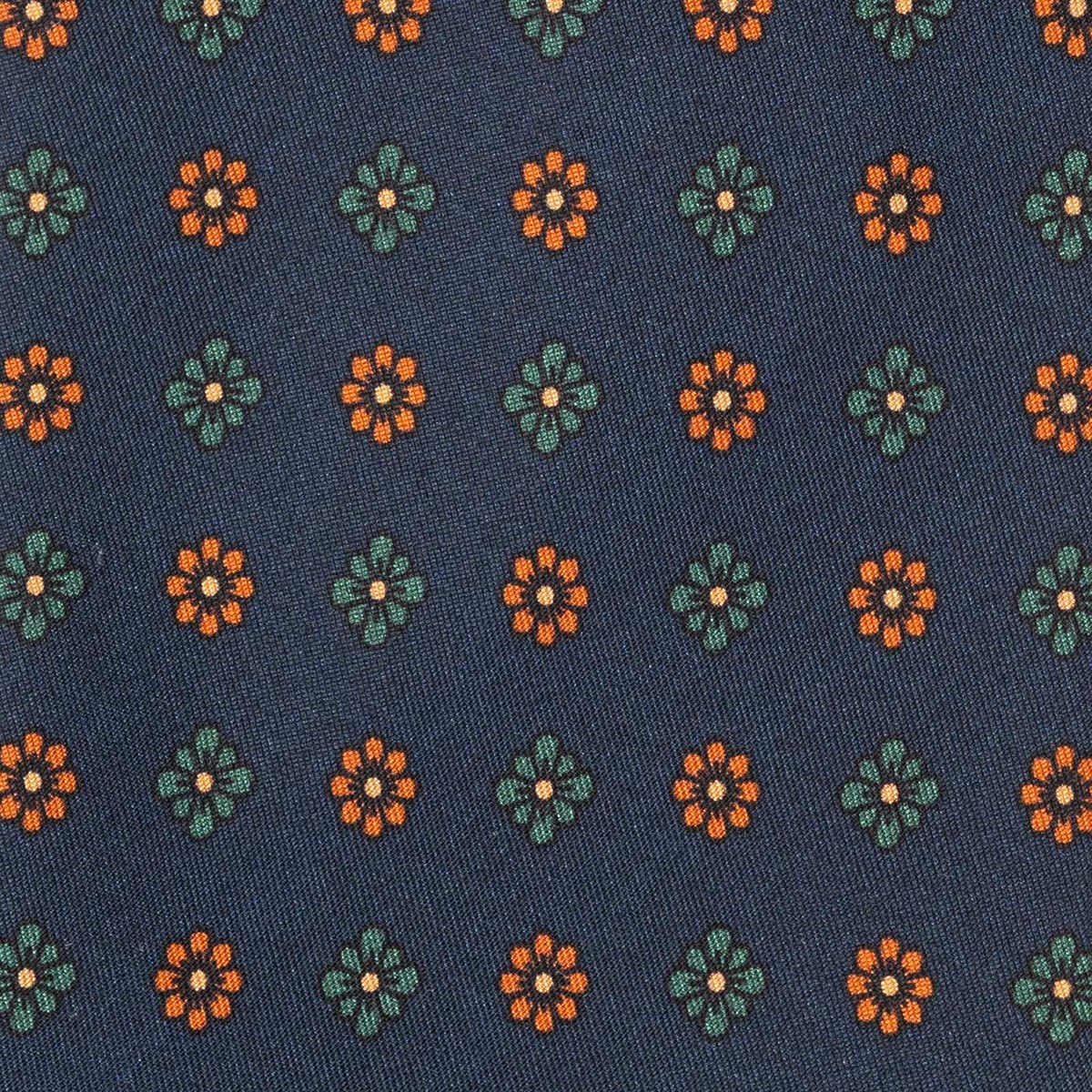 Blue silk twill tie with floral print