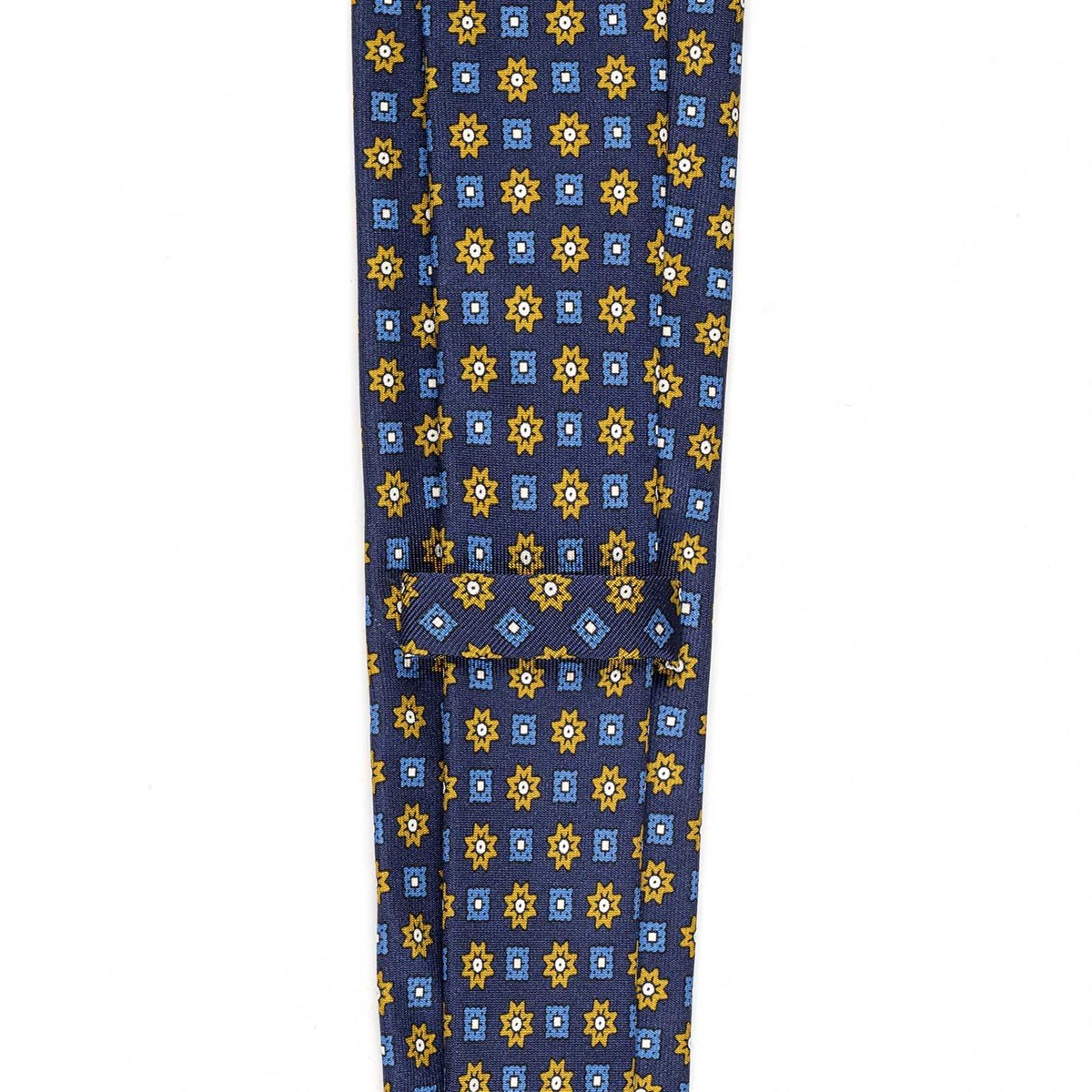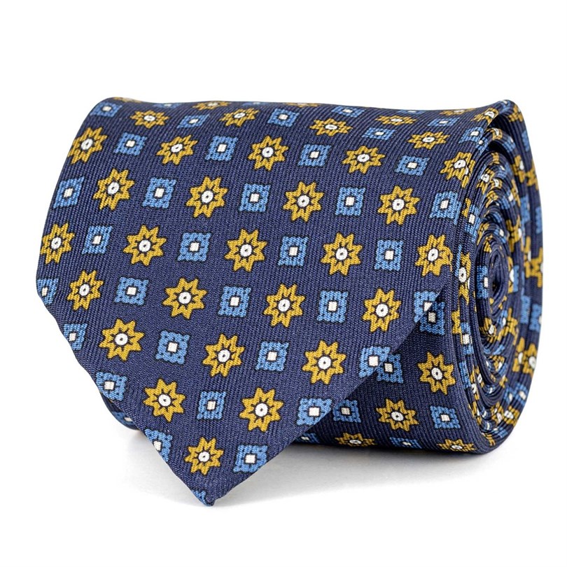 Blue silk twill tie with floral print