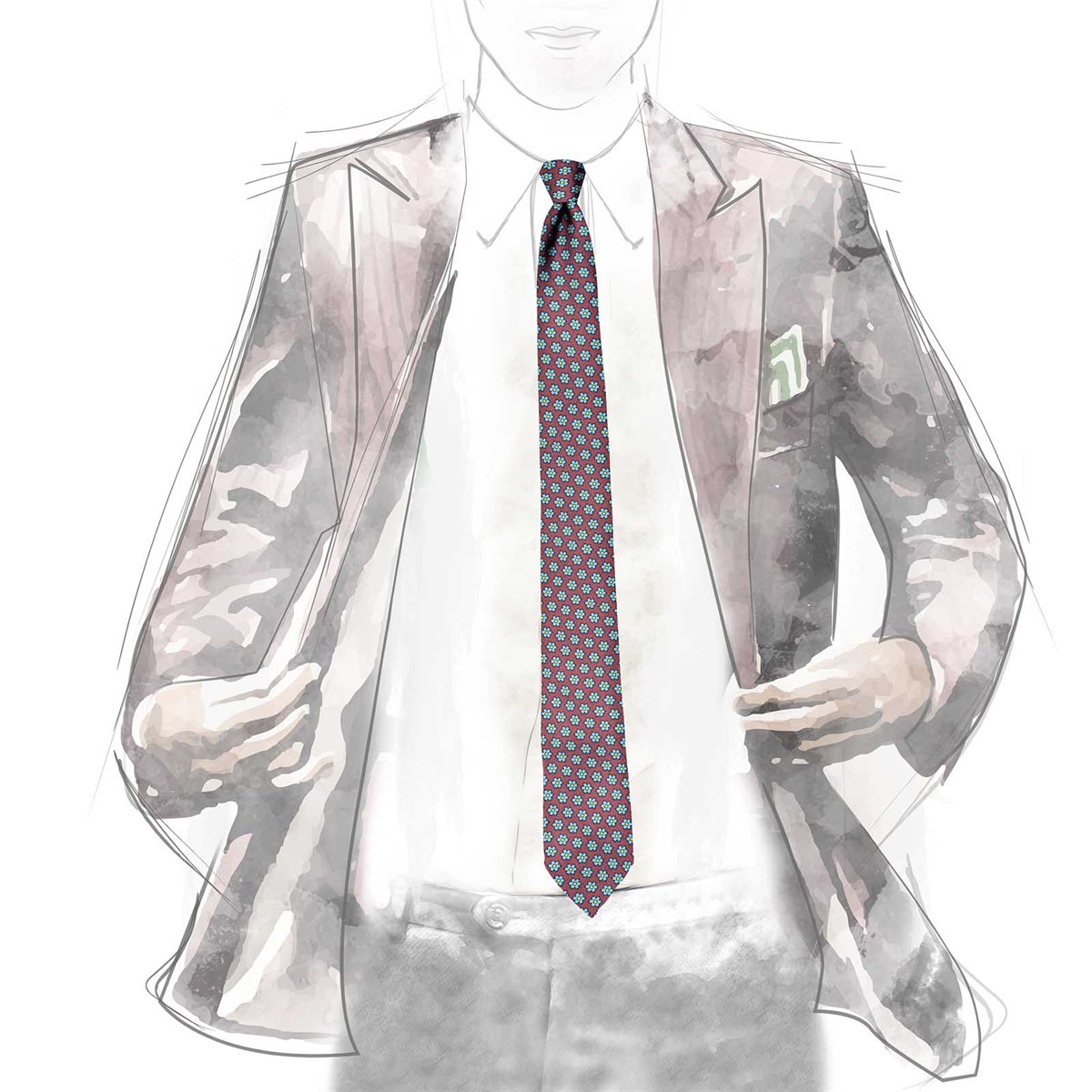 Bordeaux floral print silk twill tie
