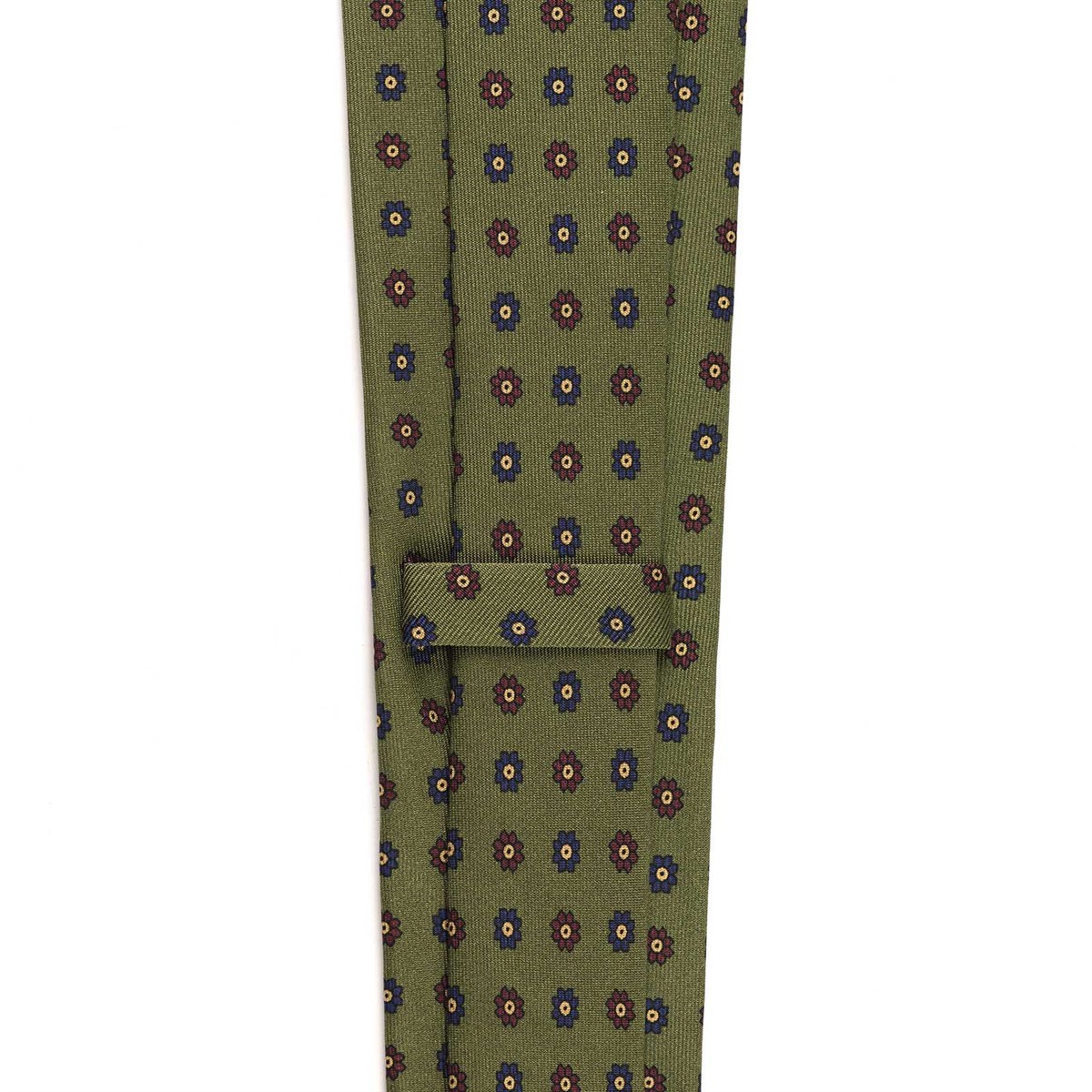 Green silk twill tie with floral print