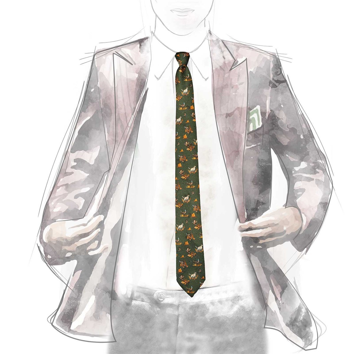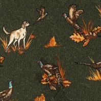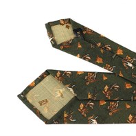 Green wool twill tie with dog print