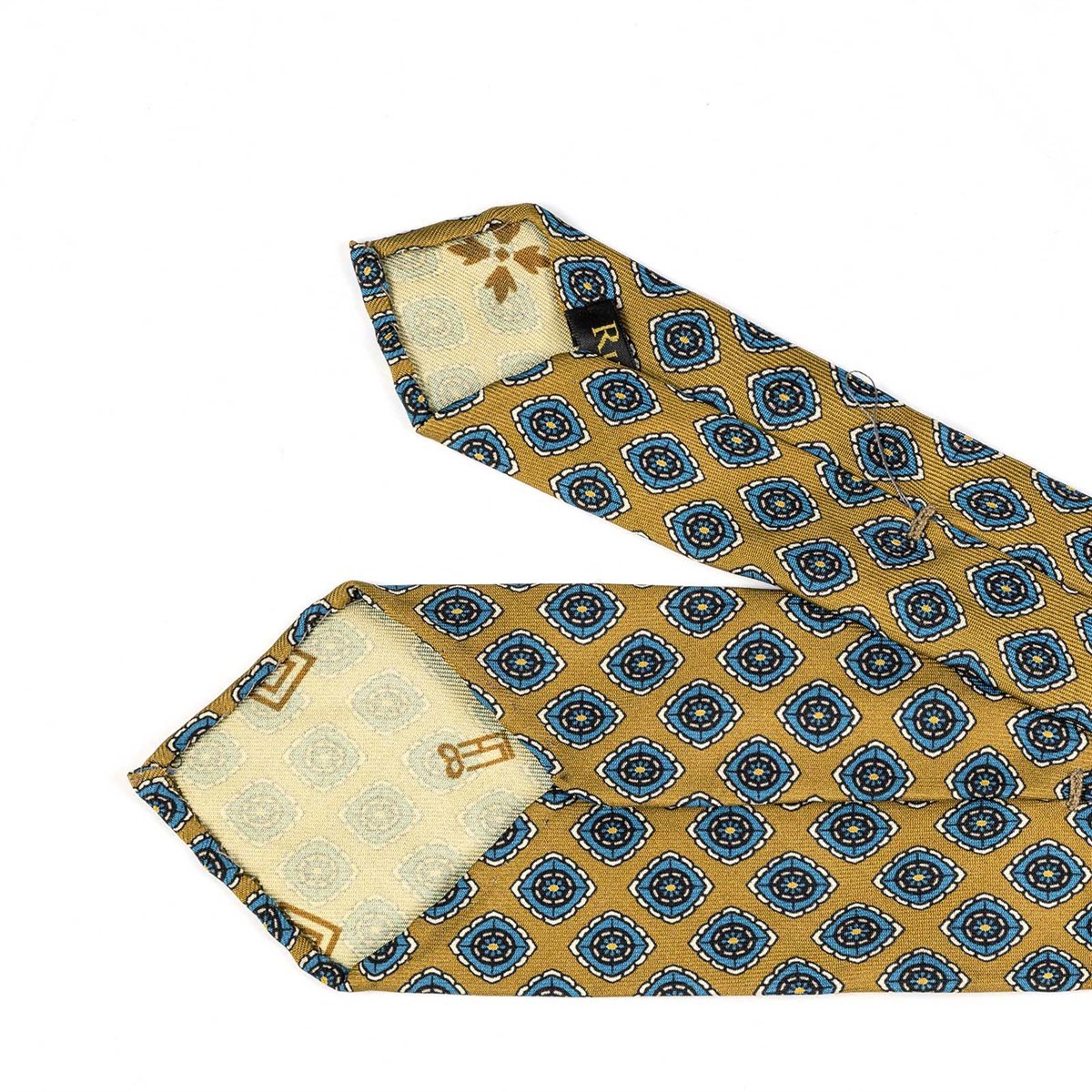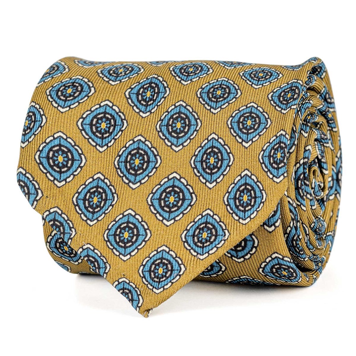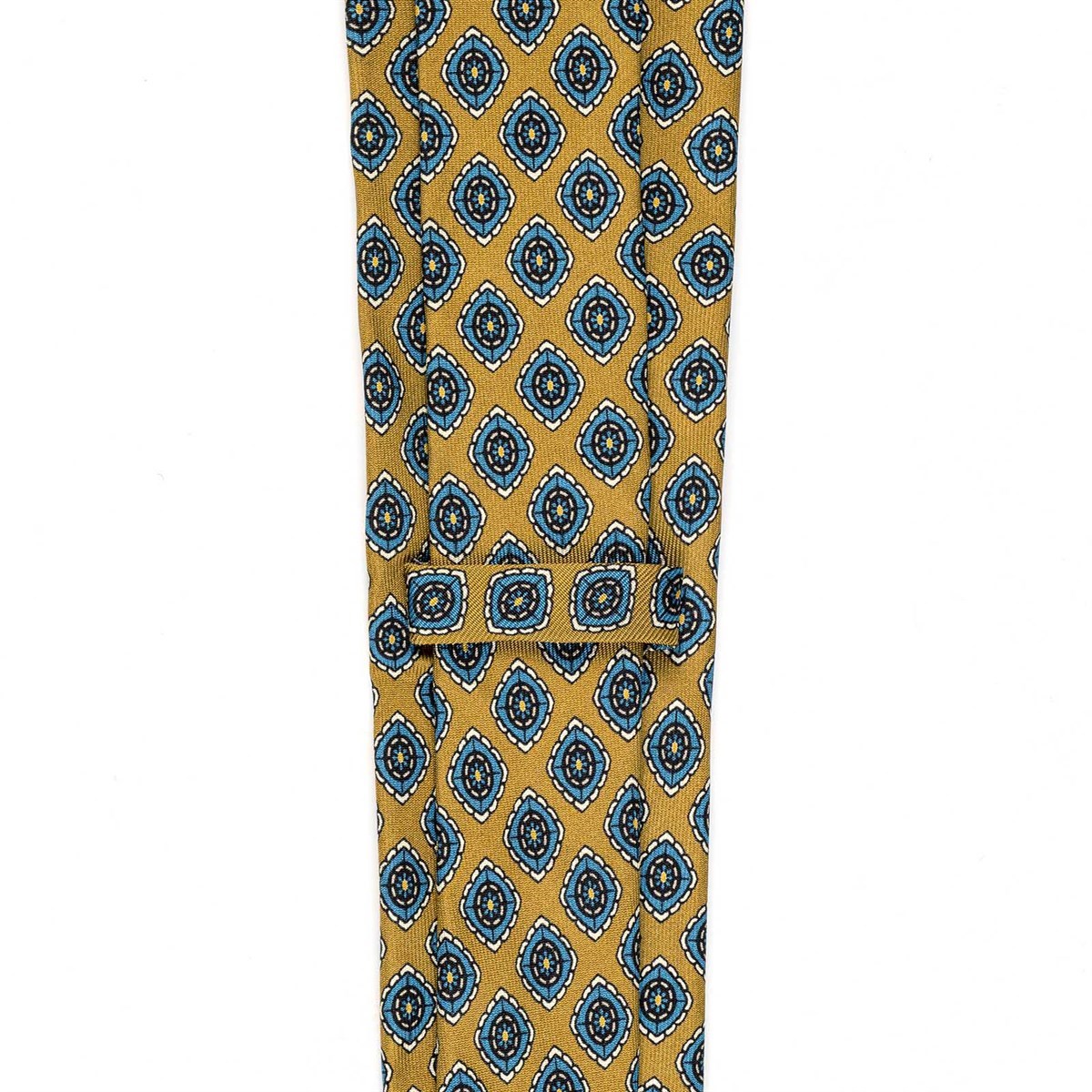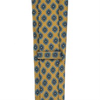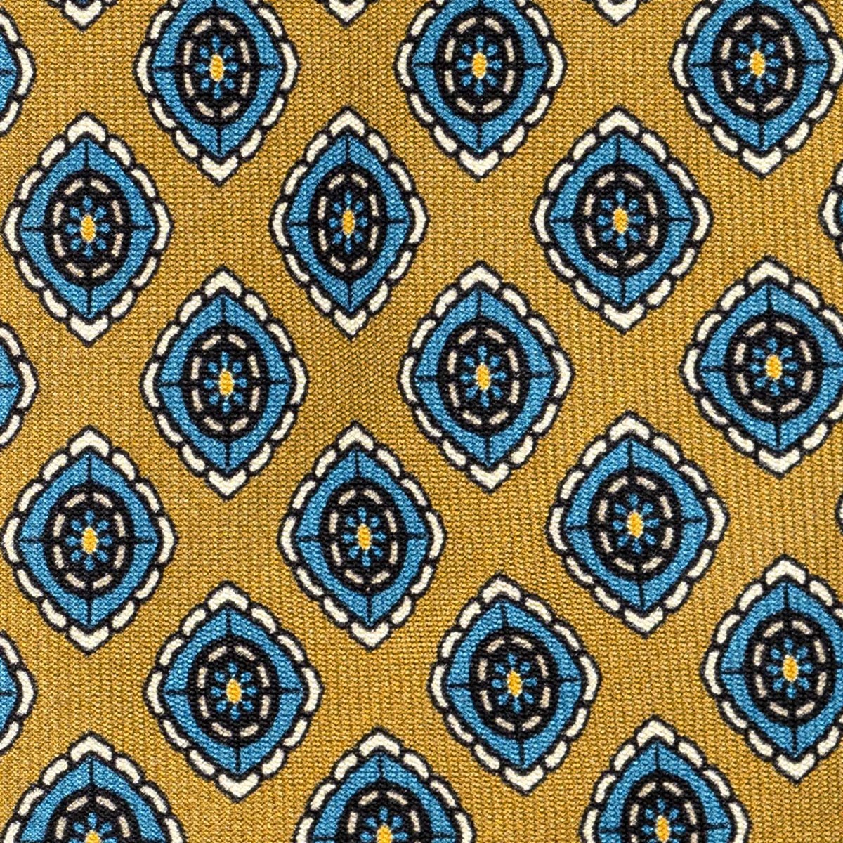 Mustard silk twill tie with geometric print