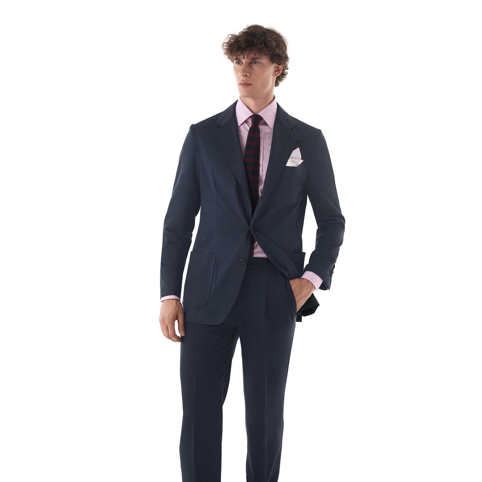 Crafted in 100% blue silk, a precious fabric appreciated for its lightness, natural sheen and soft hand, this jacket represents an absolute novelty in the Rubinacci offering. Silk, thanks to its thermoregulatory properties, has excellent moisture-absorbing capacity, maintaining a comfortable body temperature.