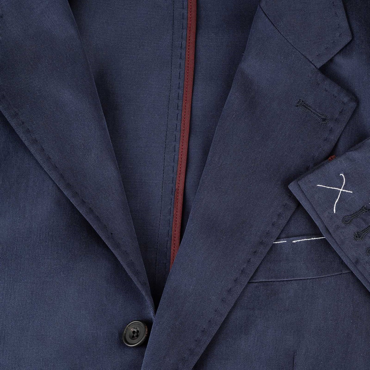 Construction: deconstructed, completely unlined, three-roll-two buttons