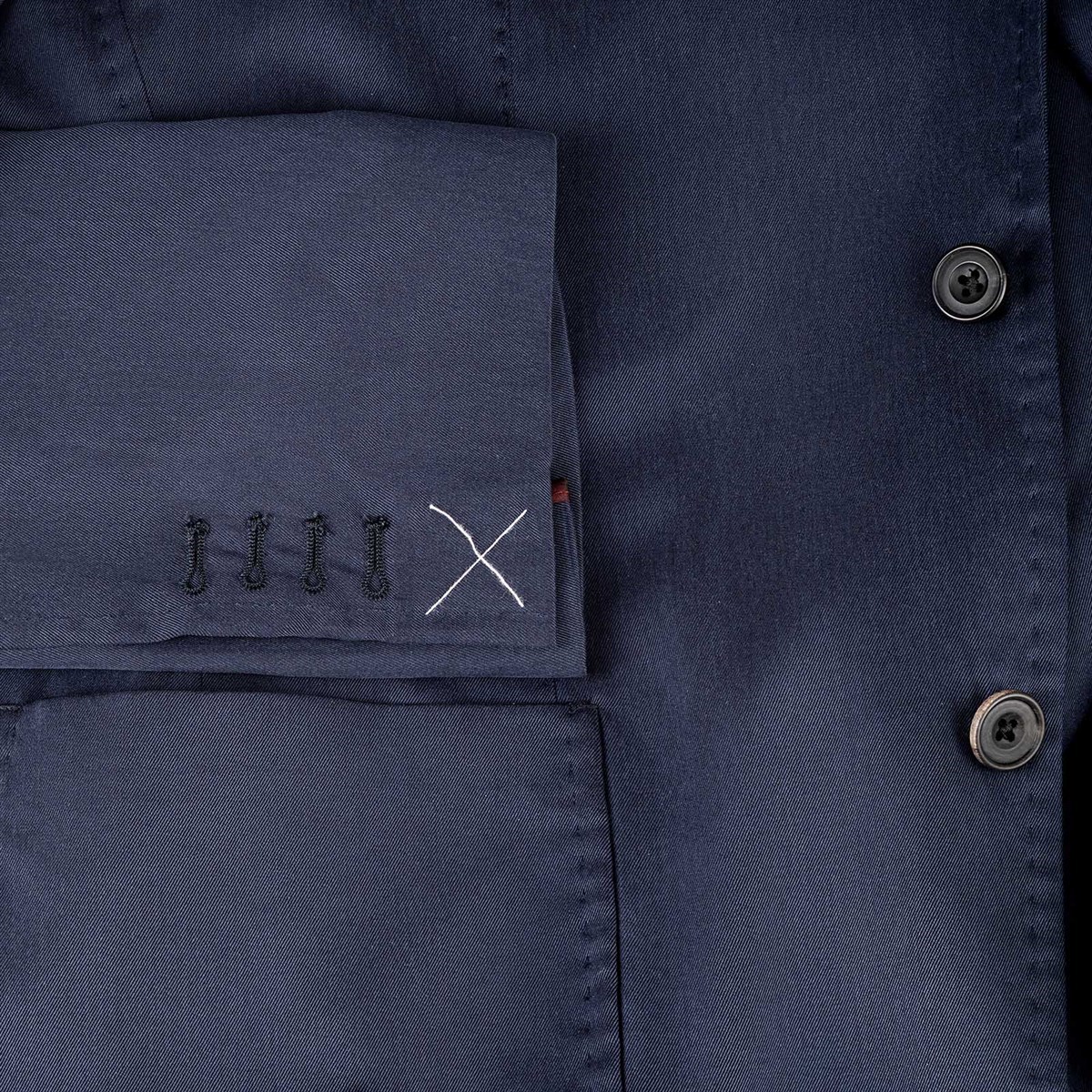A perfect jacket for an elegant yet lightweight style, combining comfort and artisanal details with a timeless aesthetic. The sleeve buttonholes are left closed in case the sleeve length needs to be adjusted.