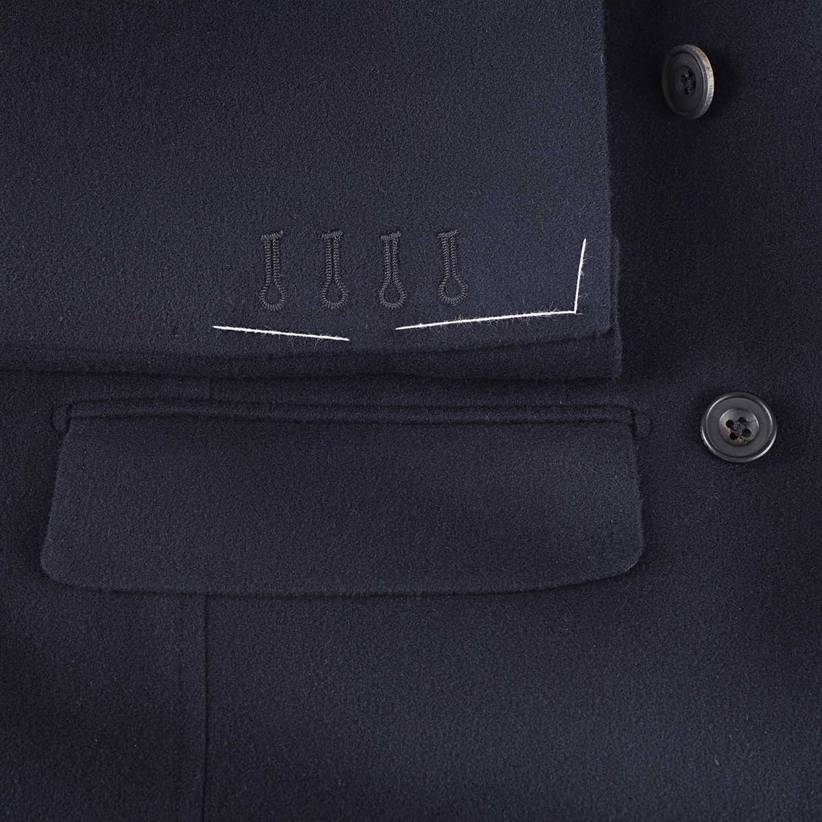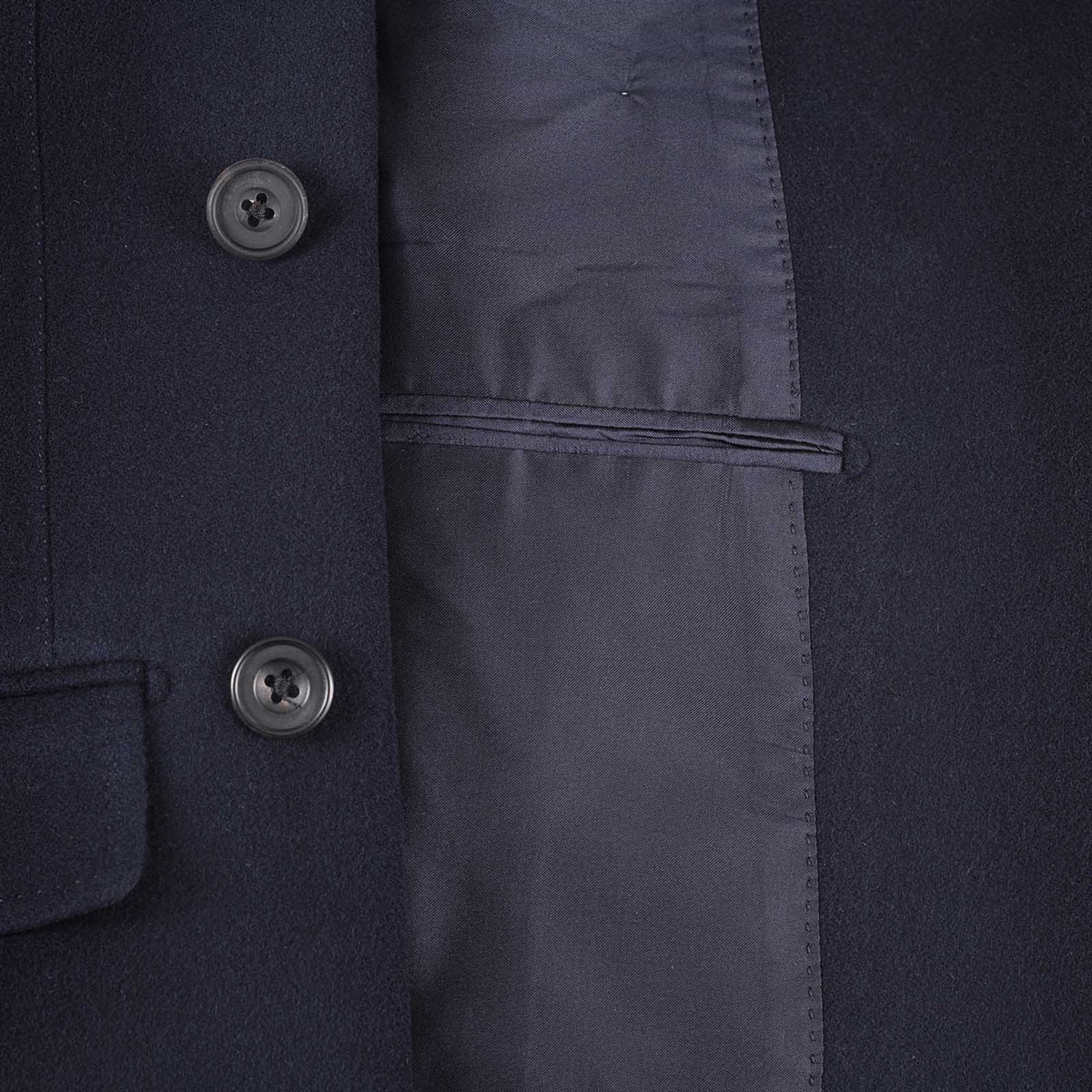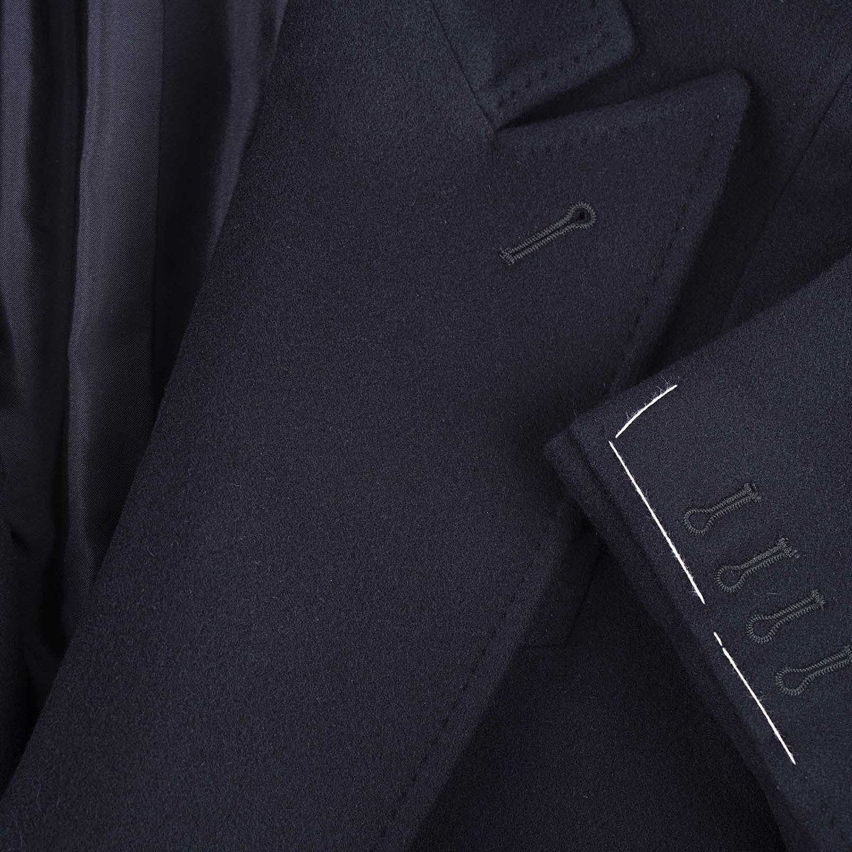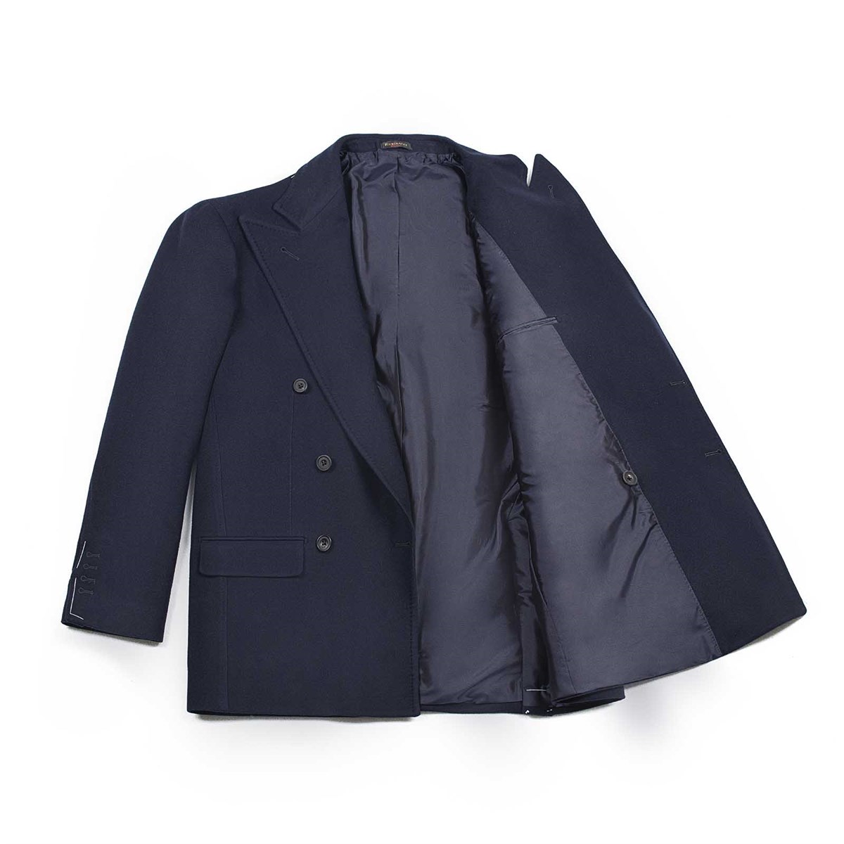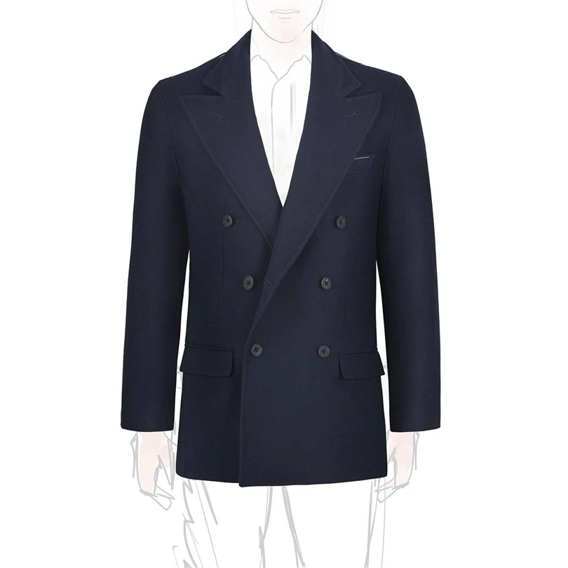 The jacket features a classic double-breasted design adorned with six exquisite horn buttons that add a touch of sophistication. Flap pockets provide functionality while maintaining a sleek profile. Fully lined in luxurious silk, the interior ensures comfort against the skin, elevating your overall wearing experience.
