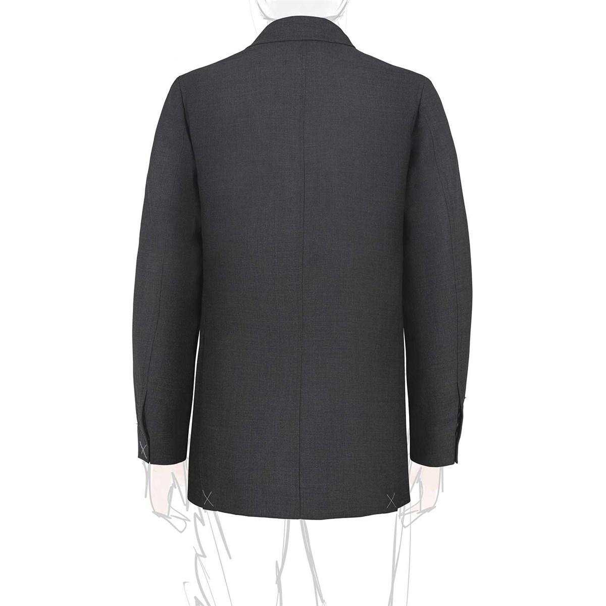 Inside, the jacket is fully lined with luxurious silk, providing a sumptuous feel against the skin and enhancing comfort throughout the day. The attention to detail is evident in the buttonholes on the sleeves, which are left closed for potential length adjustments—a service available upon request.