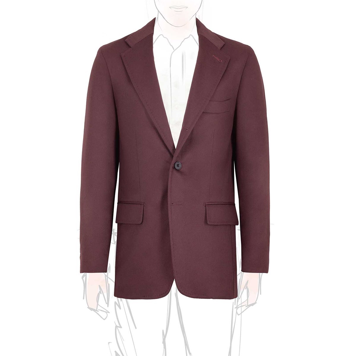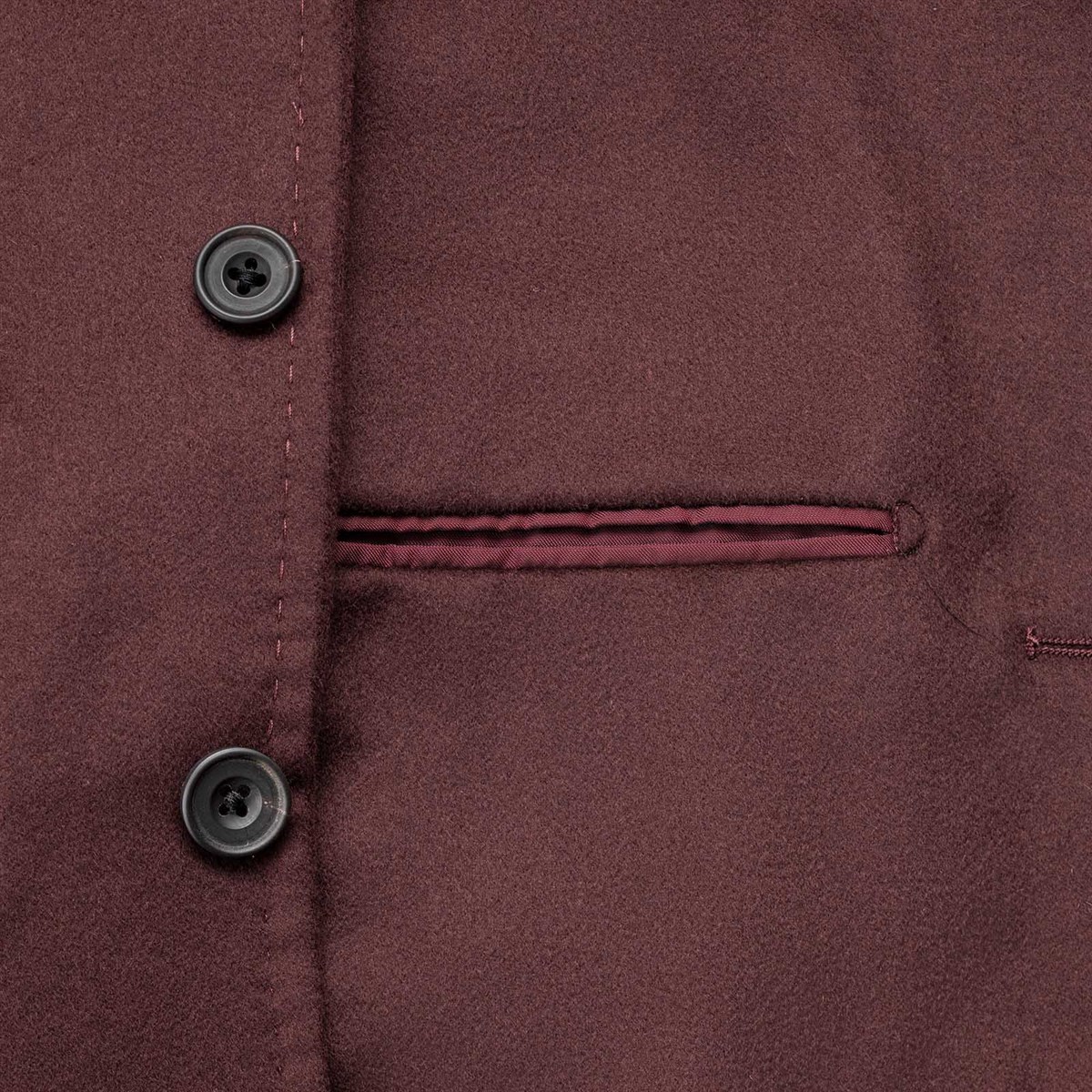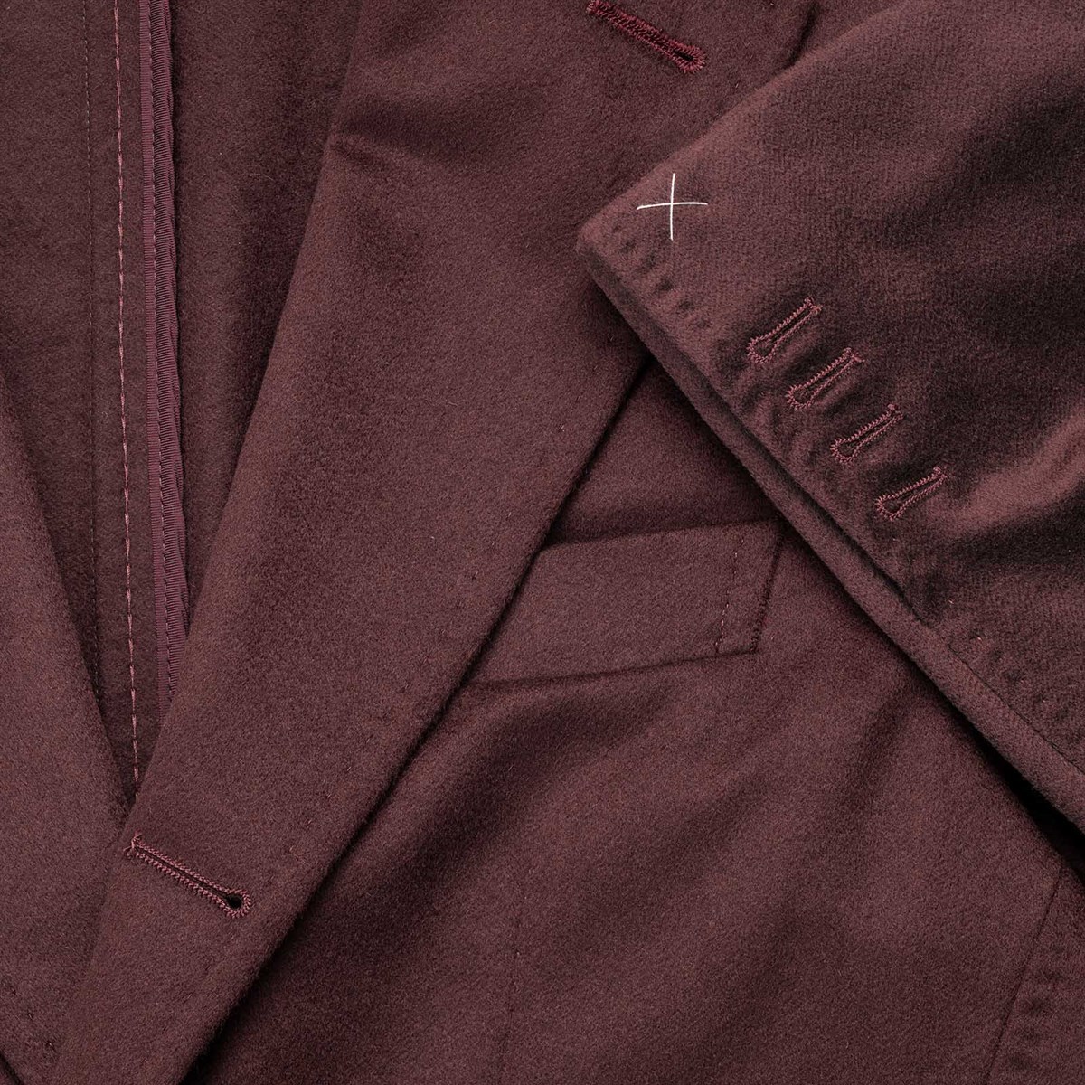 Characterized by a clean line and a regular fit, the three-roll-two jacket is completely unlined and features a classic lapel, flap pockets and a chest pocket, for an essential yet refined aesthetic. The internal sartorial details, such as hand-finished seams and contrast bordeaux piping, reflect the artisanal care typical of the Rubinacci Maison. The soft, unstructured construction of this jacket enhances the natural fluidity of the cashmere, delivering both lightness and warmth.