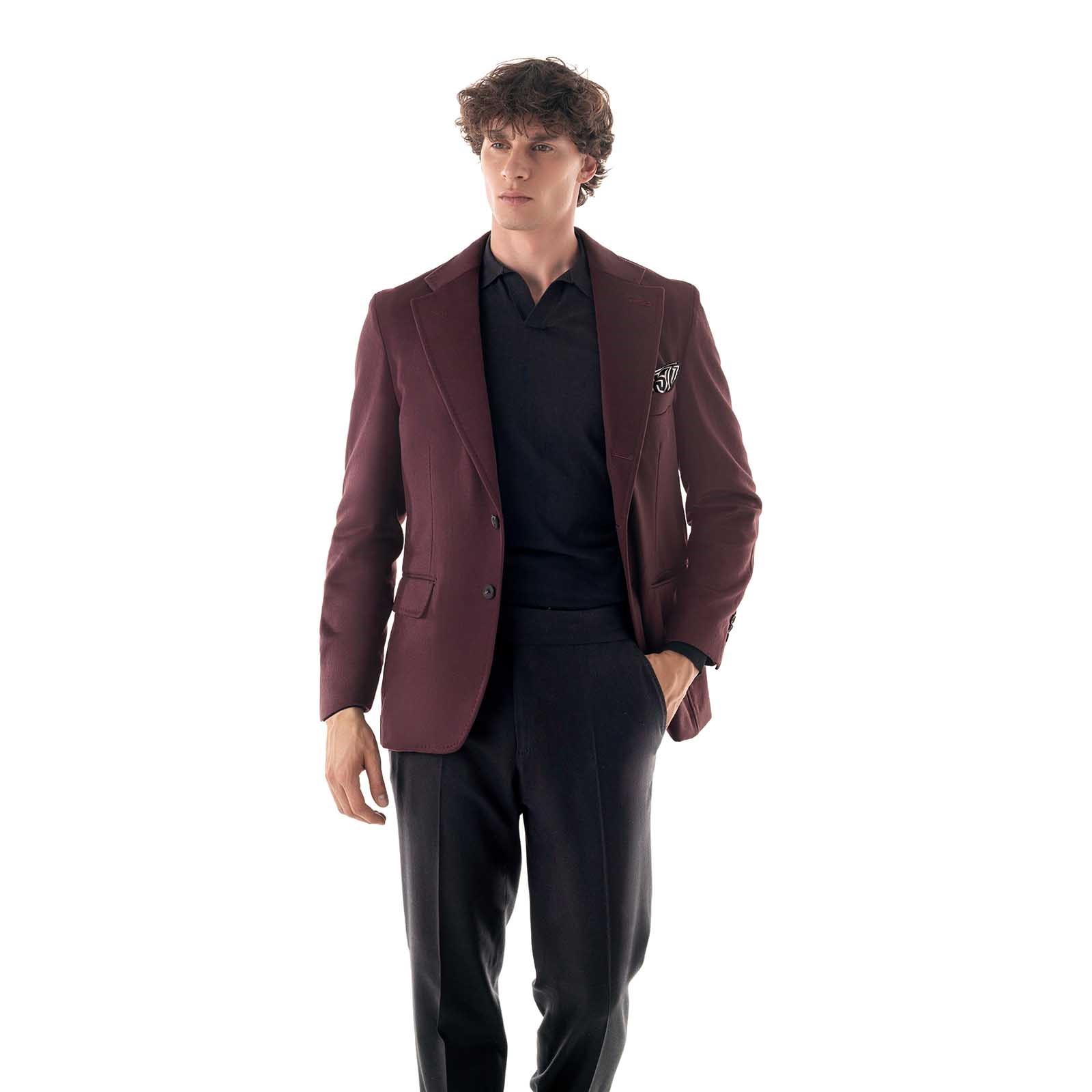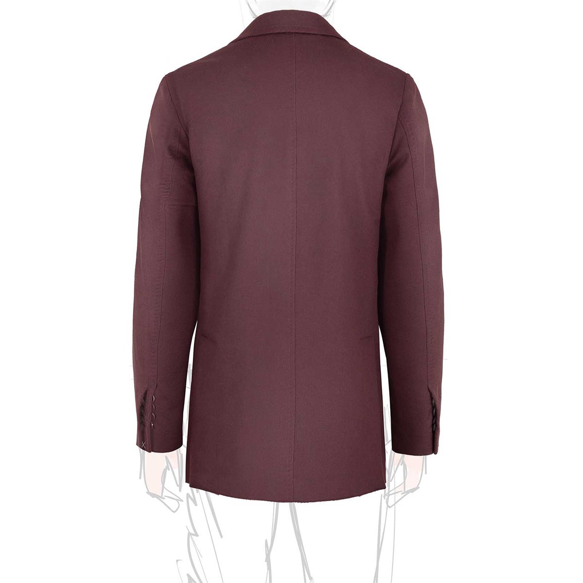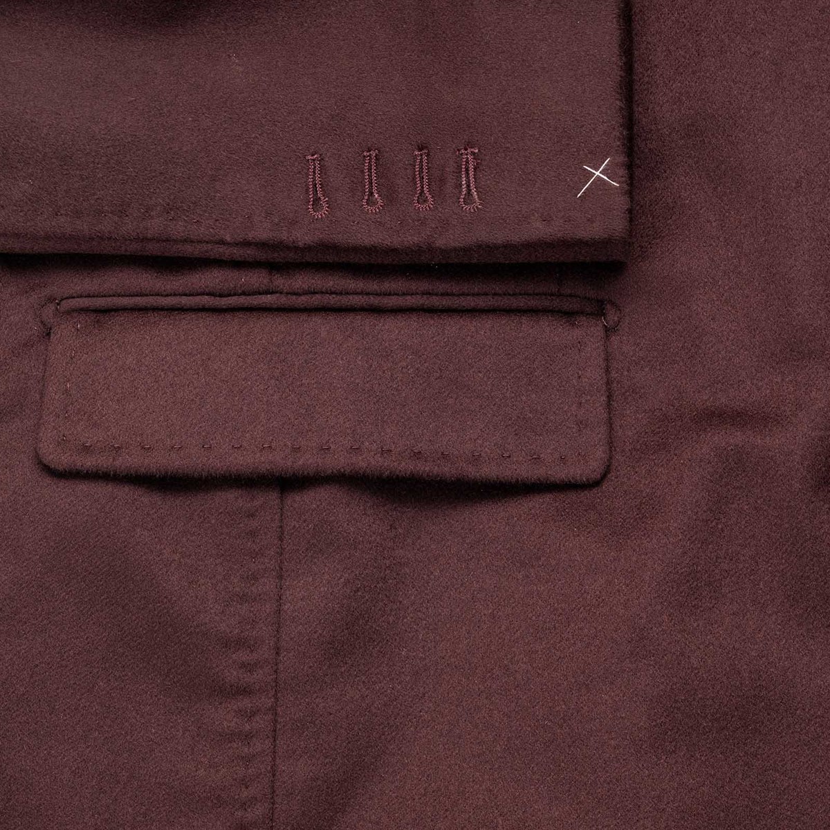 Characterized by a clean line and a regular fit, the three-roll-two jacket is completely unlined and features a classic lapel, flap pockets and a chest pocket, for an essential yet refined aesthetic. The internal sartorial details, such as hand-finished seams and contrast bordeaux piping, reflect the artisanal care typical of the Rubinacci Maison. The soft, unstructured construction of this jacket enhances the natural fluidity of the cashmere, delivering both lightness and warmth.