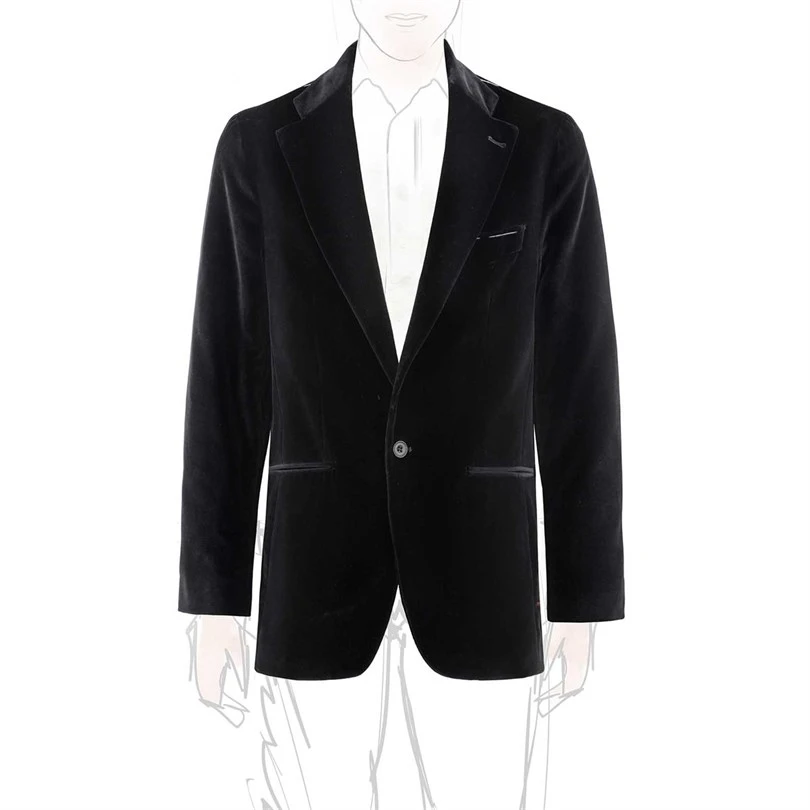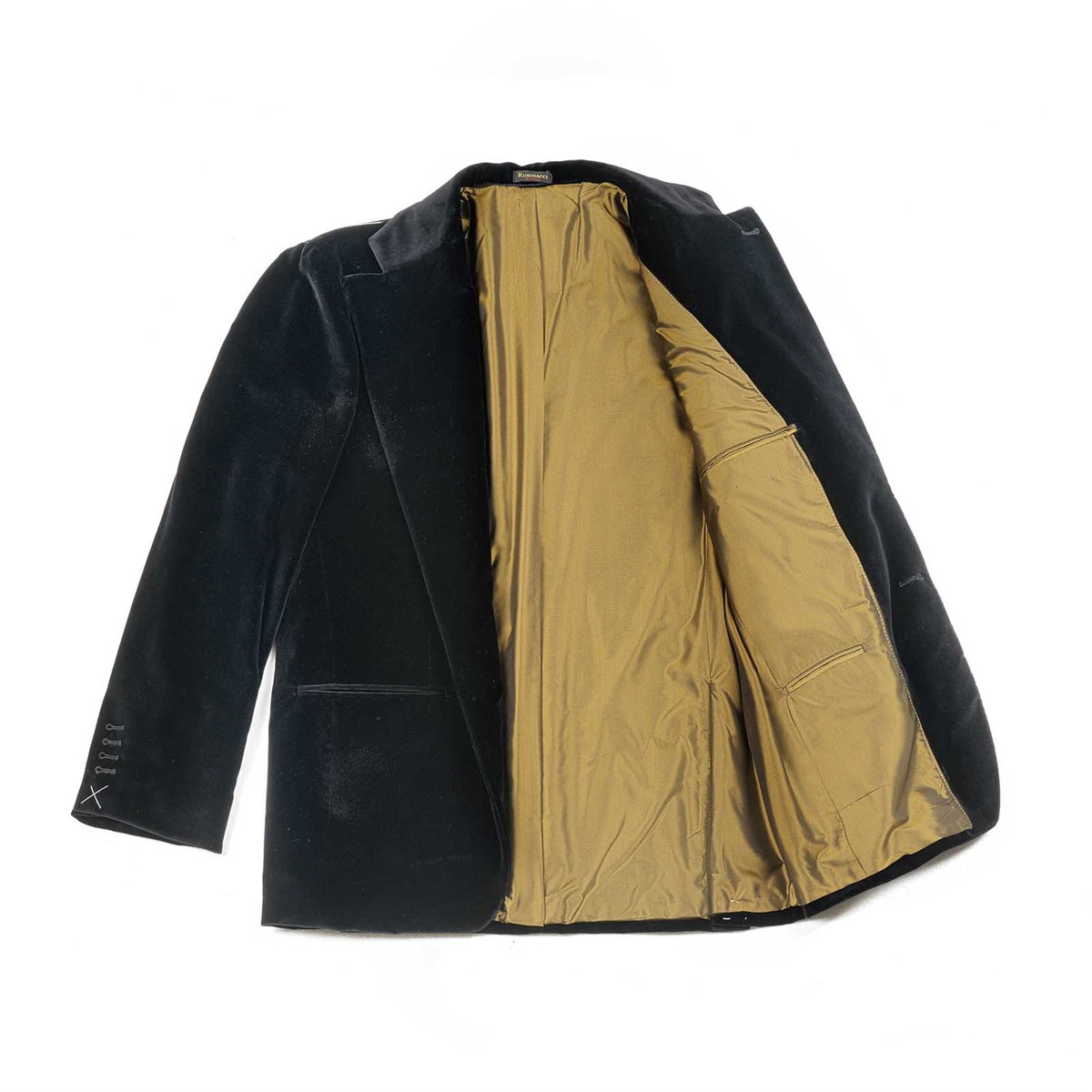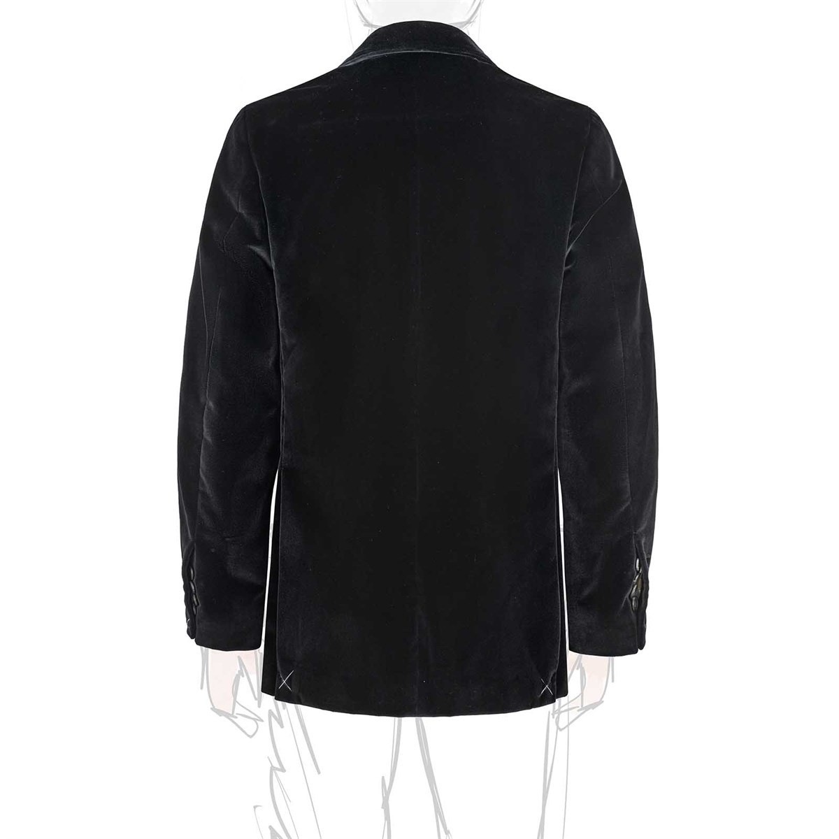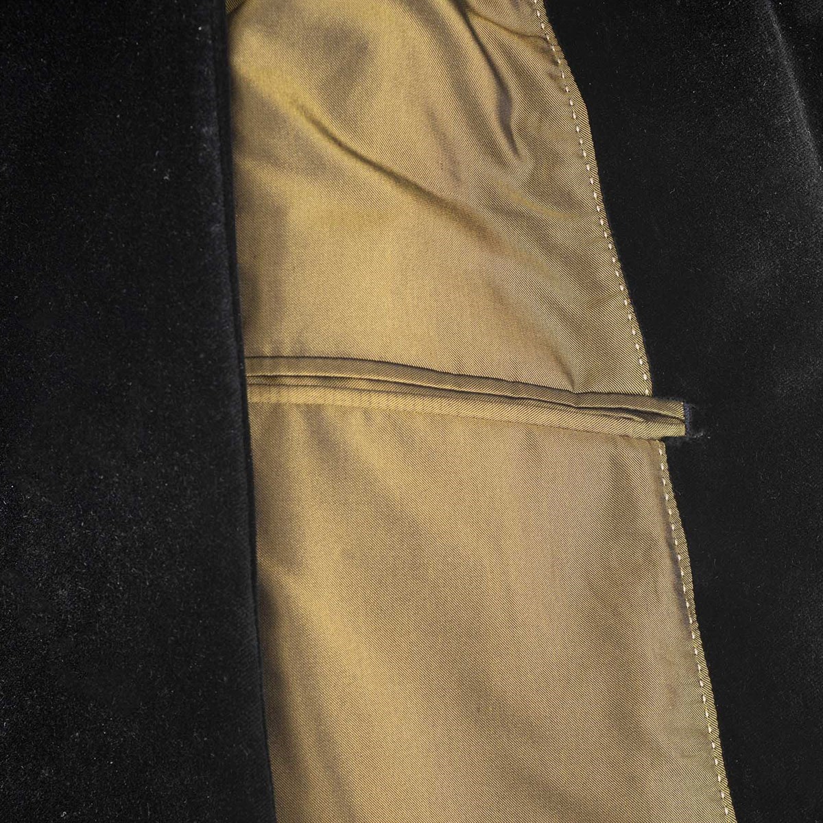 Synthesis of classic style and Neapolitan craftsmanship, this Rubinacci single-breasted jacket is crafted from fine, smooth black pure cotton velvet. A timeless fabric with a bold character that gives depth and personality to the piece, while enhancing its elegant yet relaxed allure. Designed for the man who seeks to stand out with discretion, combining comfort and refinement in every detail. Characterized by a clean silhouette and a regular fit, the one-button jacket is fully lined and features a classic lapel, welt pockets, and a breast pocket — for an essential yet sophisticated aesthetic.The internal tailoring details, such as hand-finished stitching and the contrasting gold lining, reflect the artisanal care typical of the Maison Rubinacci. The velvet, with its rich and tactile texture, has an iridescent effect: the color slightly changes depending on the light and fabric direction, adding depth and dynamism to the garment. Ideal for adding a sophisticated touch to the everyday wardrobe, this jacket perfectly embodies the excellence of Italian savoir-faire. The sleeve buttonholes are closed to allow for possible length adjustments.