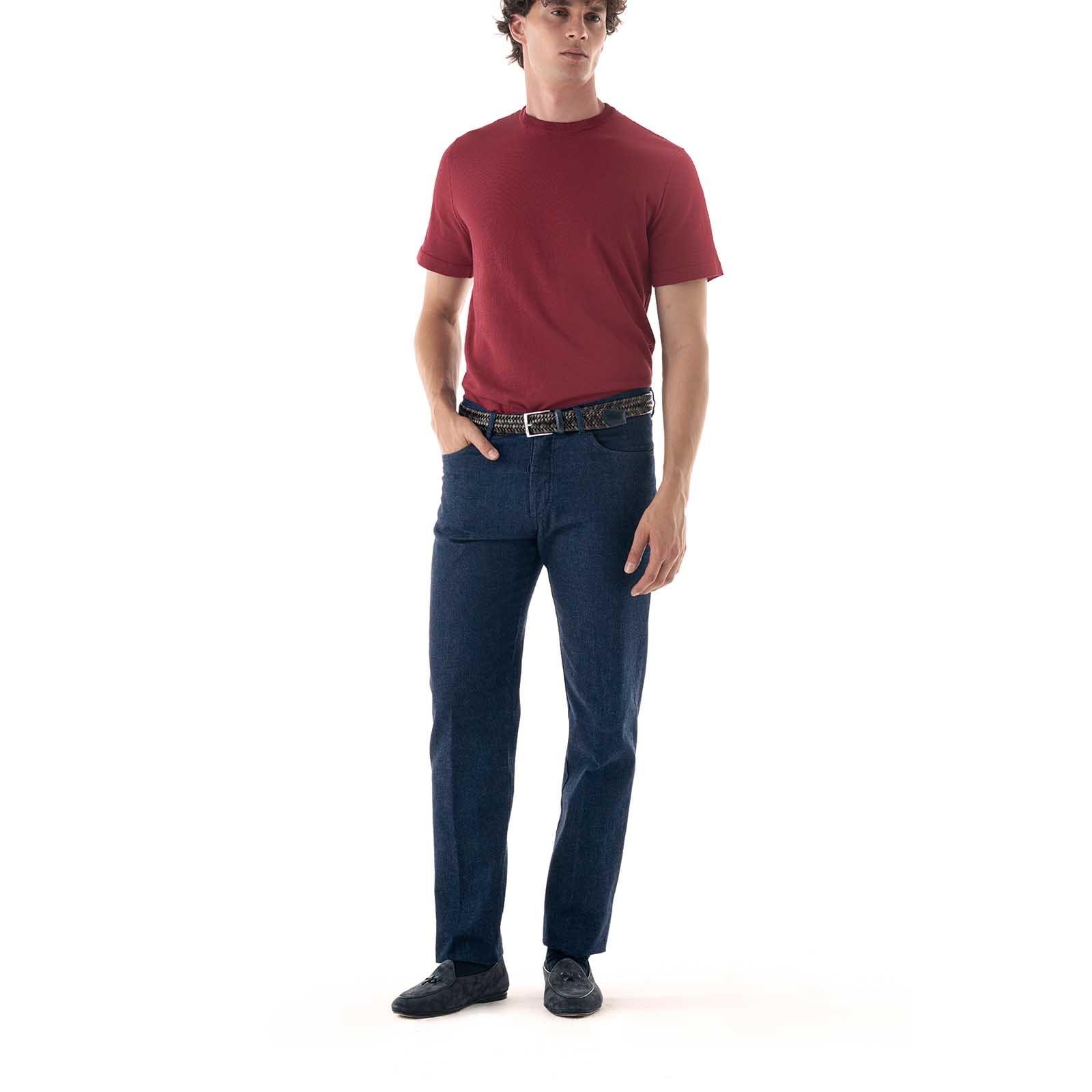 The precious Sea Island yarn, cultivated in limited quantities on the Caribbean islands, is renowned for its incredibly silky feel, natural sheen, and exceptional durability over time. Rubinacci’s processing enhances these qualities using a gas-spun LS (Long Staple) yarn, 4/100,000 count, which ensures compactness, softness, and longevity. The garment is crafted in fully-fashioned knit, a sartorial technique that guarantees clean lines and a fluid fit, harmoniously following the body’s contours. The lightness of the fabric and the precision of the finishes make this T-shirt an example of essential elegance, ideal for those seeking authenticity, comfort, and attention to every detail.