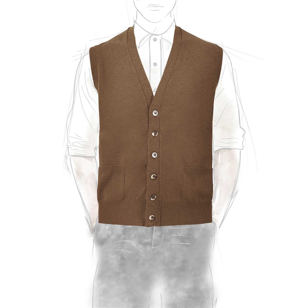 Every detail reflects the Maison’s artisanal mastery: clean lines, impeccable cut, mother-of-pearl buttons, and a gros-grain finish—a sartorial detail that adds structure and a refined textural contrast. Perfect over a shirt and under a jacket for relaxed elegance, the Rubinacci cashmere waistcoat is an iconic piece that unites tradition and comfort.