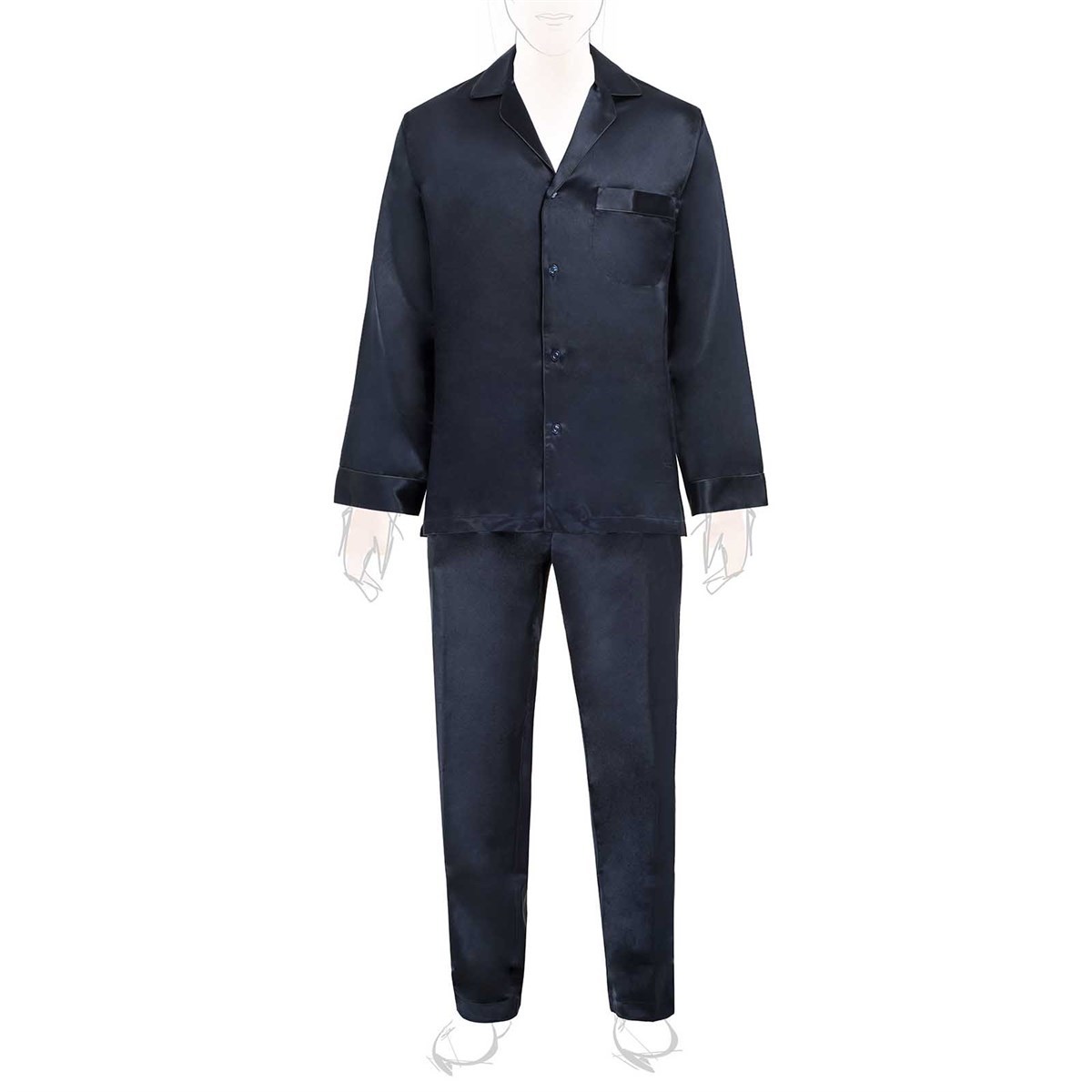 Silk, renowned for its breathability and lightweight properties, ensures that you stay comfortable throughout the night. The hypoallergenic nature of silk makes these pajamas suitable for all skin types, offering a soft touch that feels divine against your skin. The elegant blue navy color is complemented by contrasting piping, adding a sophisticated touch to your sleepwear collection.