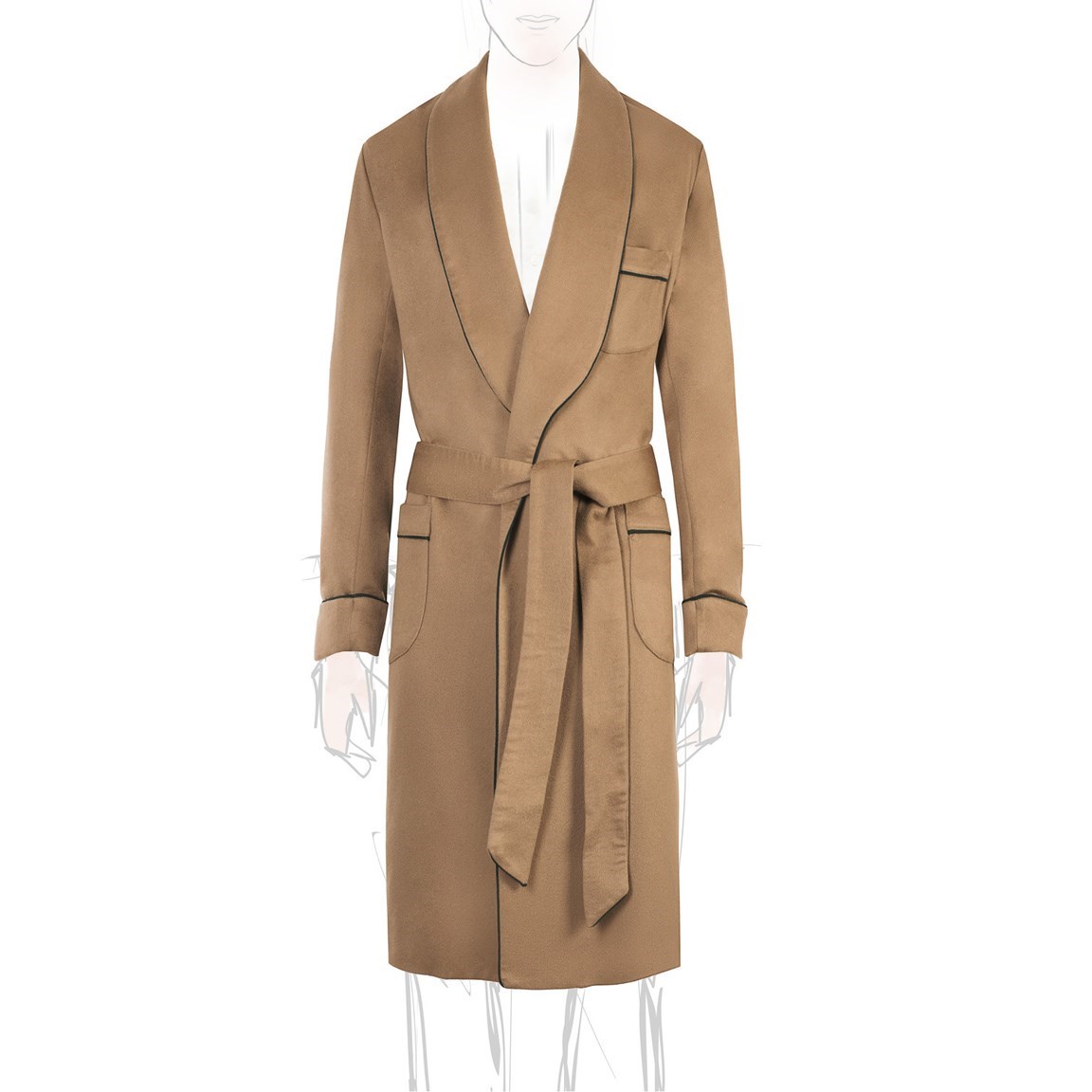 Elevate your home attire with our Camel Cashmere Dressing-Gown and embrace moments of tranquility with unparalleled elegance.