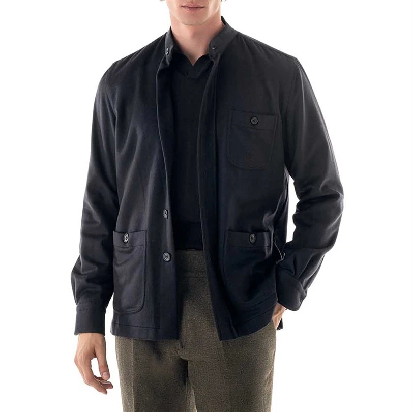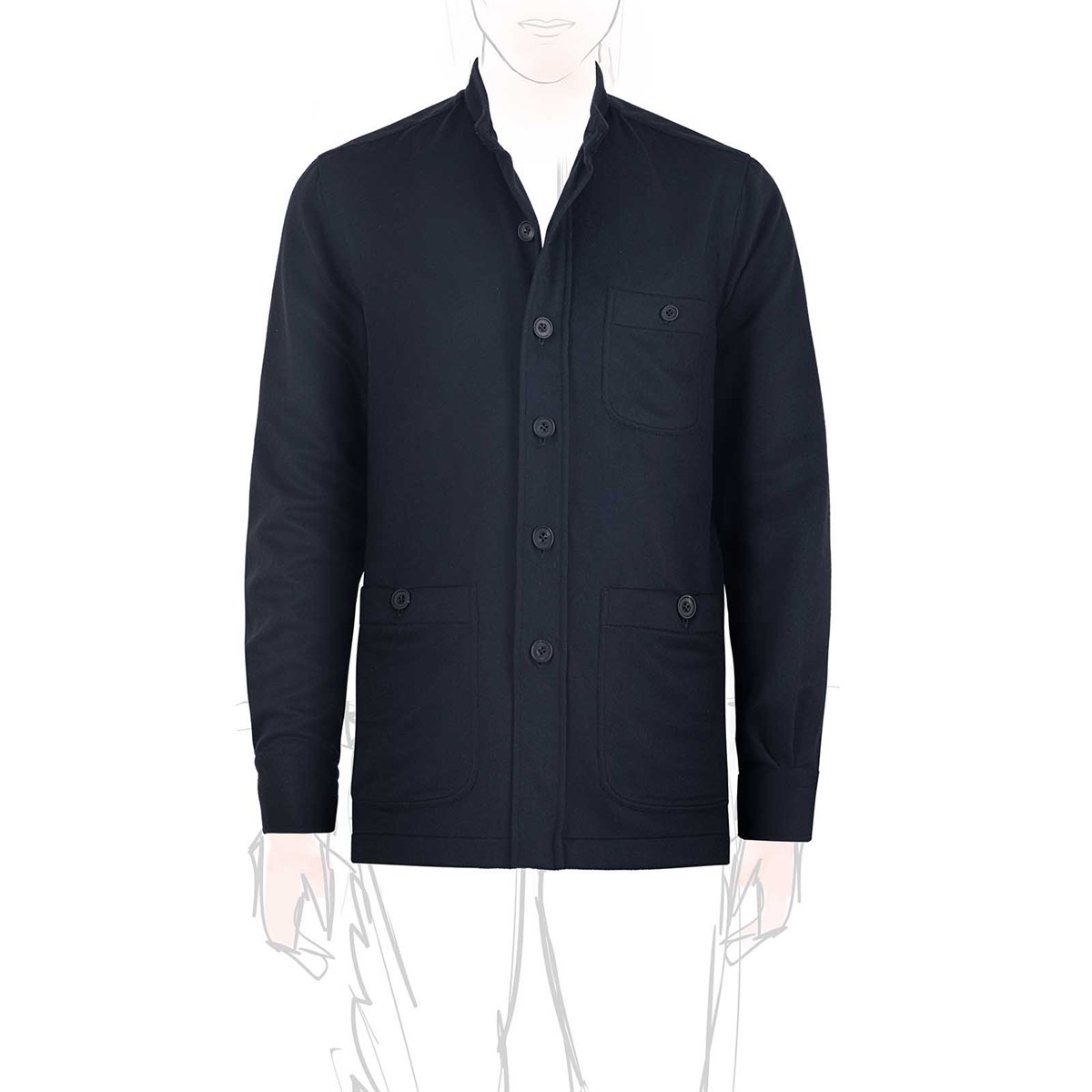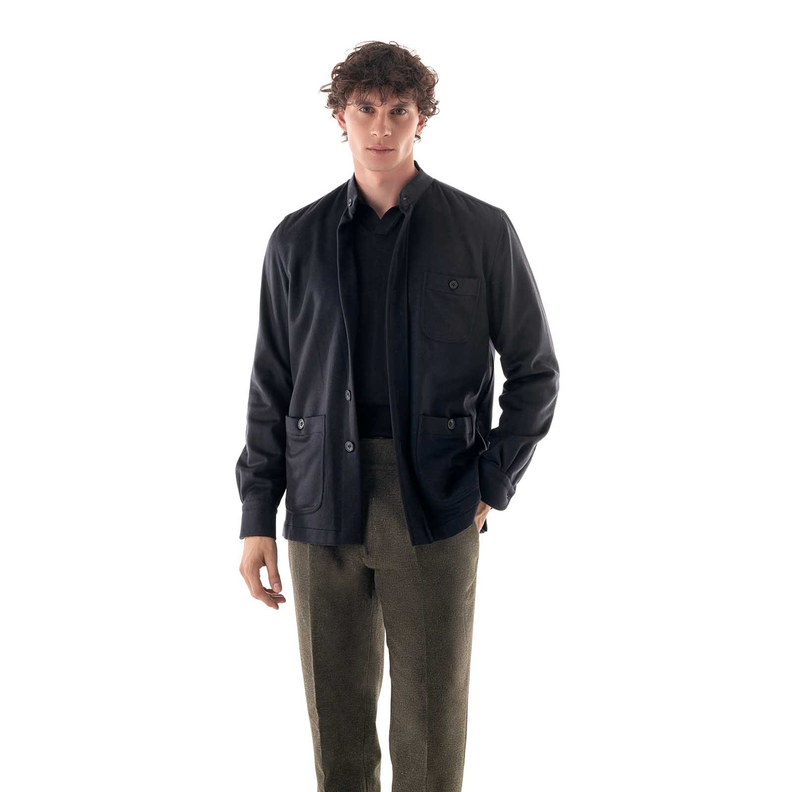 The essential design, defined by three front pockets without flaps, enhances the garment’s clean lines and contemporary spirit, maintaining a silhouette that is both refined and relaxed. The guru collar adds a touch of considered originality, making this sahariana perfect for both urban settings and more laid-back occasions. A piece that strikes the perfect balance between sartorial tradition, exceptional materials, and a modern vision of everyday luxury.