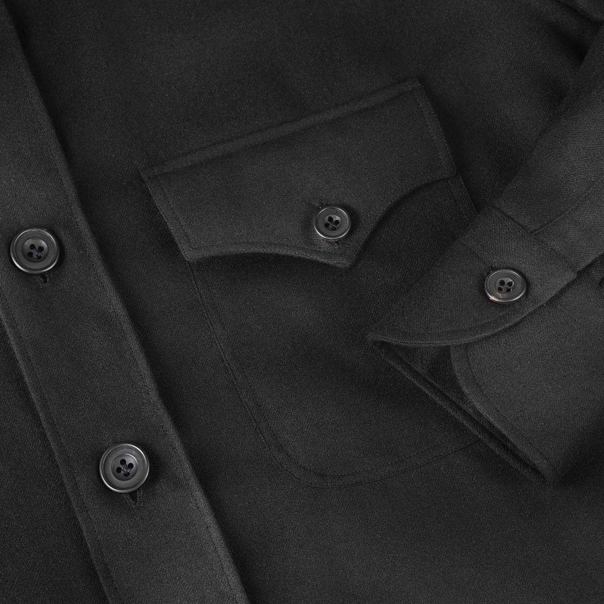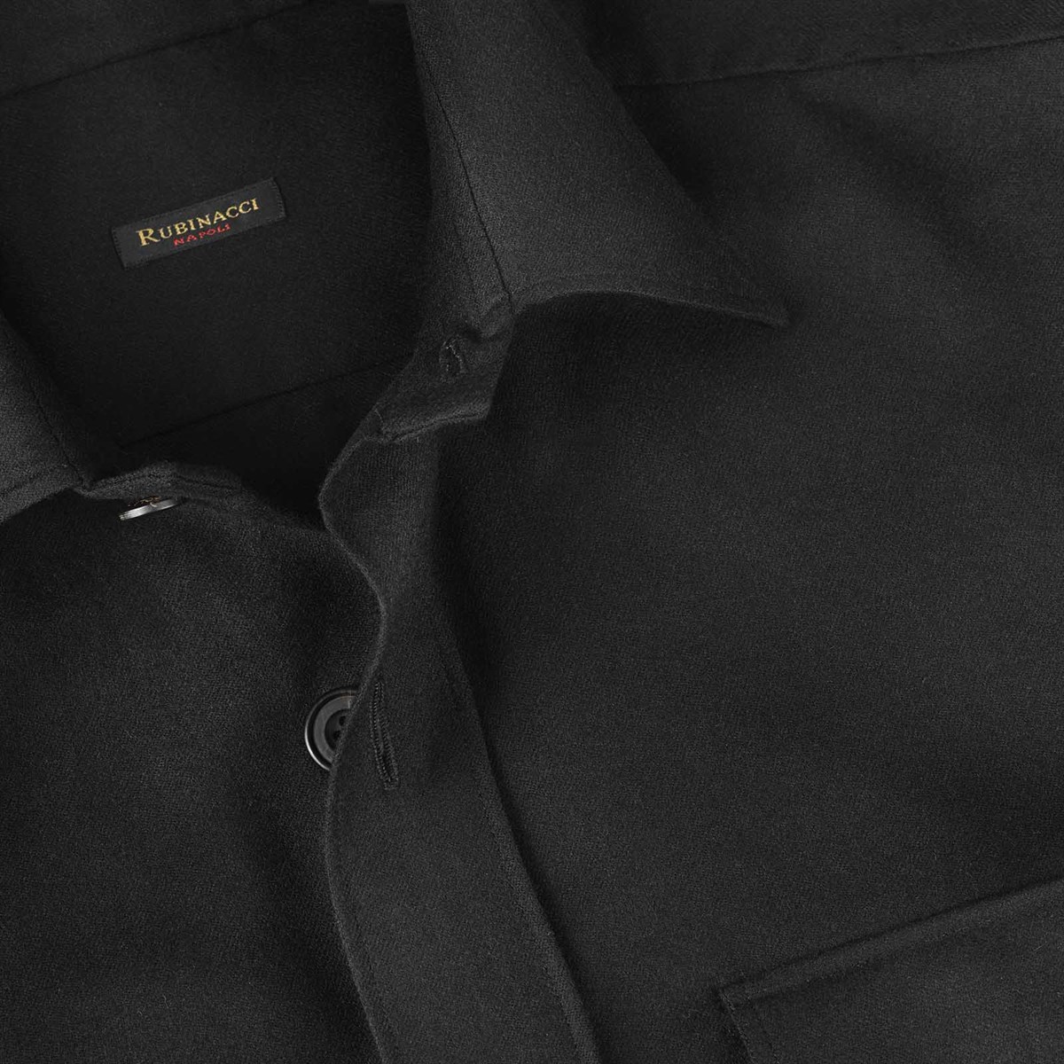 Each detail, from the carefully selected horn buttons to the tailored cut, speaks to Rubinacci's commitment to quality and attention to detail. Whether you're exploring the outdoors or dressing up for a casual outing, this versatile overshirt is the perfect addition to any wardrobe, effortlessly blending practicality with timeless elegance. Embrace the art of Italian craftsmanship with the Black Wool Safari Jacket.