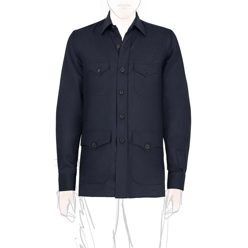 The essential design, defined by four front pockets, enhances the clean lines and modern spirit of the garment while maintaining a refined and effortless silhouette. This sahariana is perfect for both urban settings and more relaxed occasions.