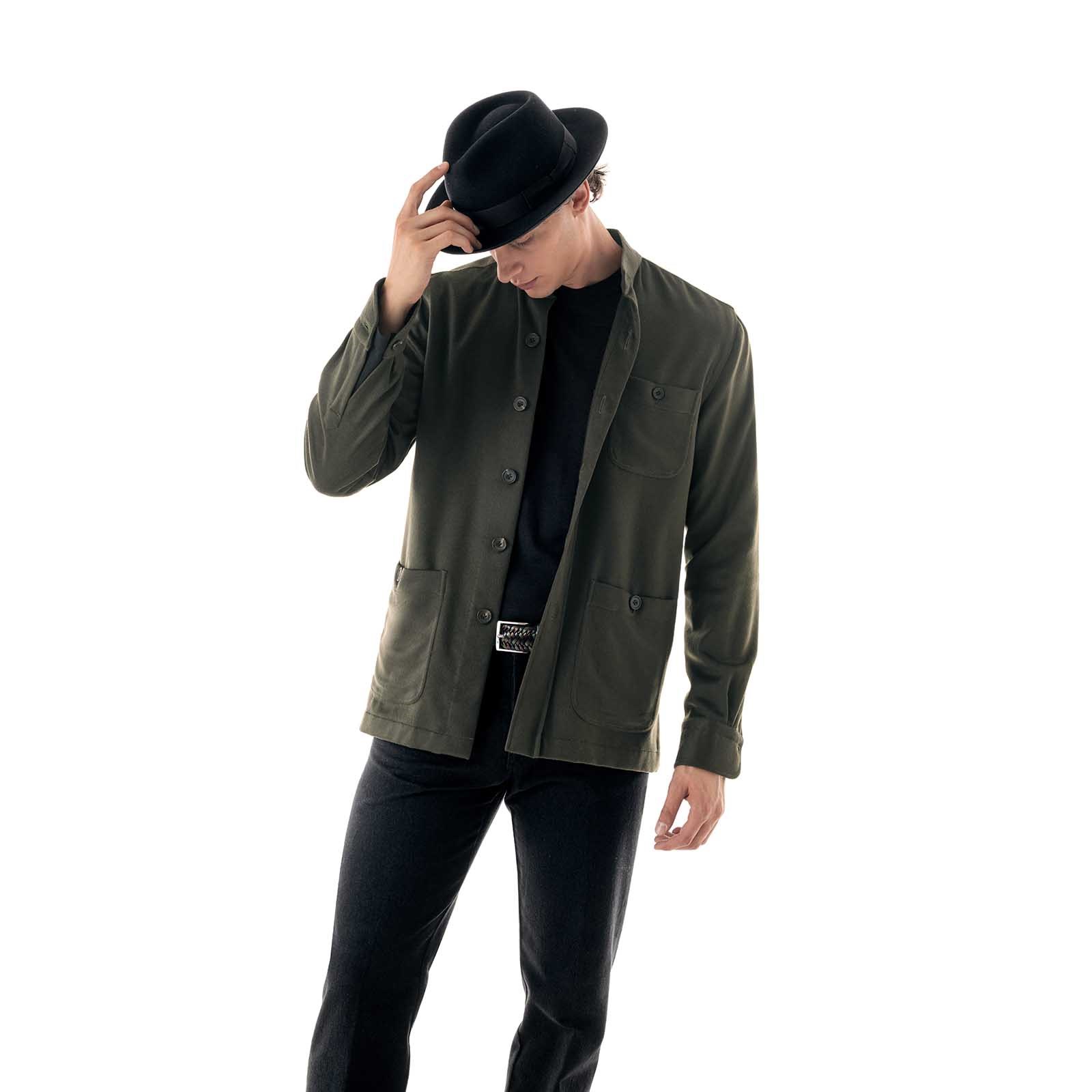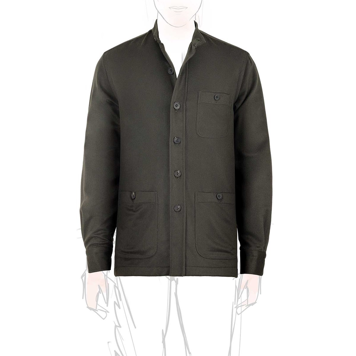 The essential design, defined by three front pockets without flaps, enhances the garment’s clean lines and contemporary spirit, maintaining a silhouette that is both refined and relaxed. The guru collar adds a touch of considered originality, making this sahariana perfect for both urban settings and more laid-back occasions. A piece that strikes the perfect balance between sartorial tradition, exceptional materials, and a modern vision of everyday luxury.