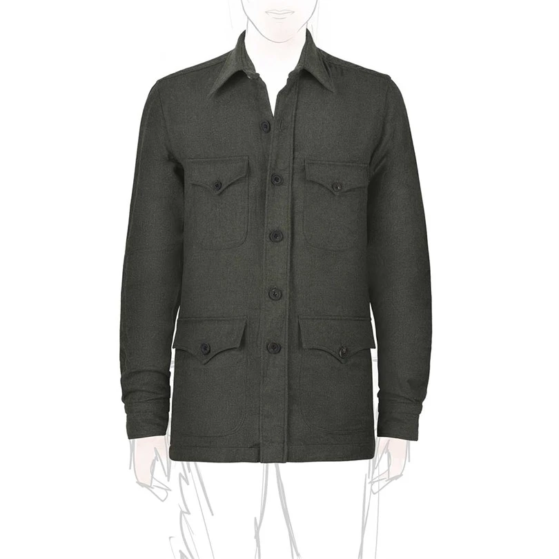 Whether layered over a casual shirt or worn on its own, the Green Wool and Silk Safari Jacket is a versatile addition to any wardrobe, offering a unique blend of style, comfort, and timeless elegance. Embrace the essence of luxury with this exceptional piece from Rubinacci.