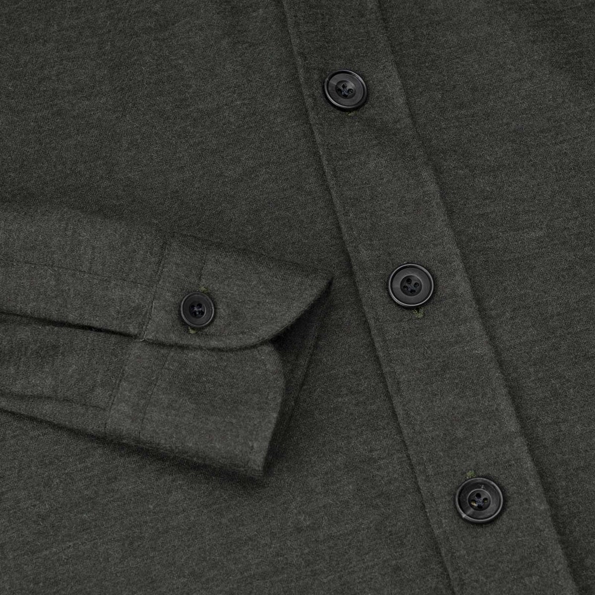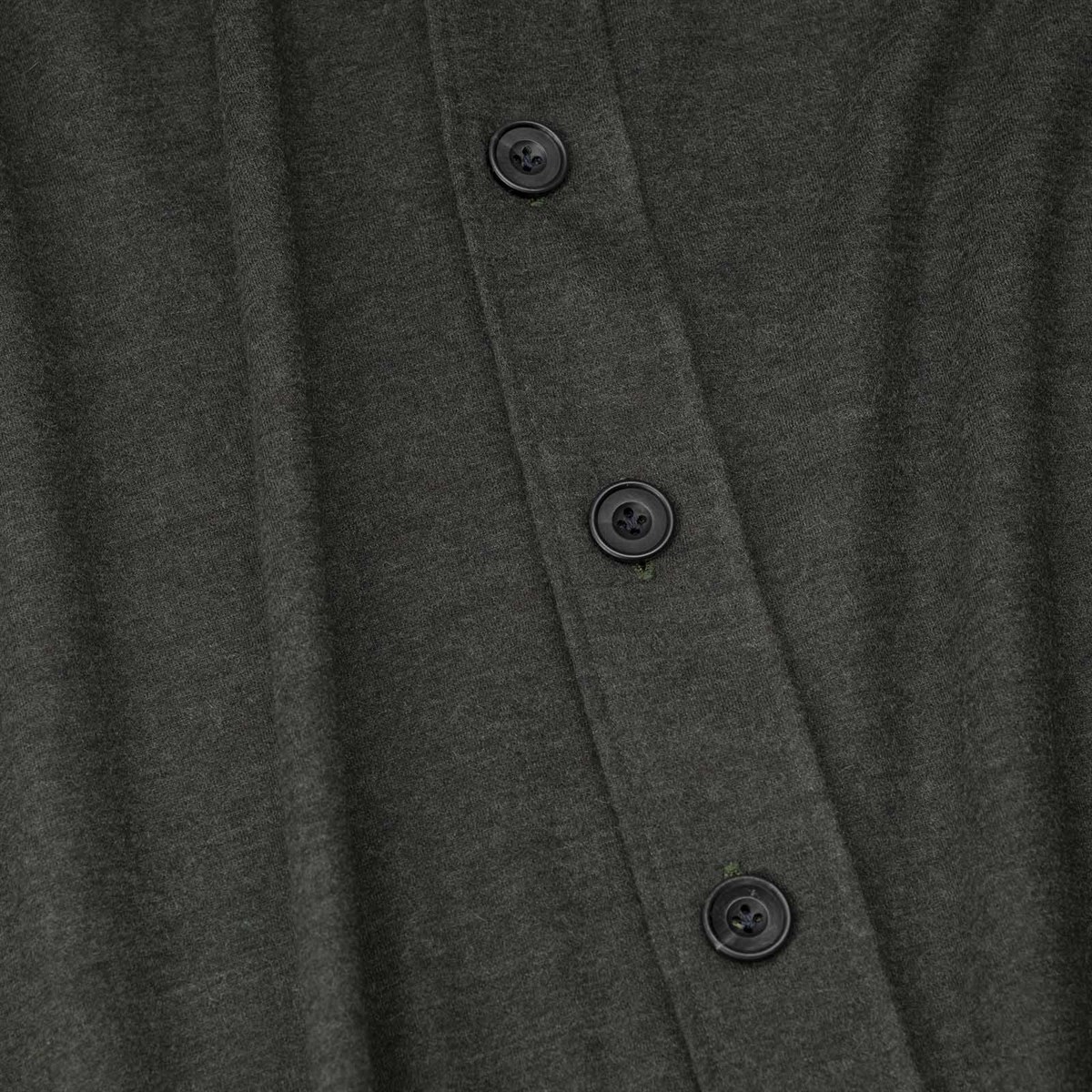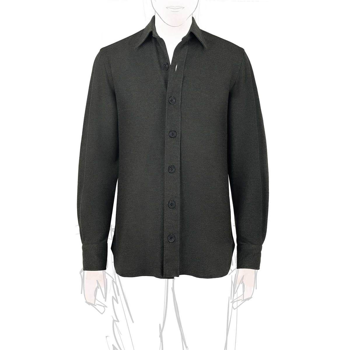 Style: long sleeves with cuffs, classic collar, front closure with horn buttons