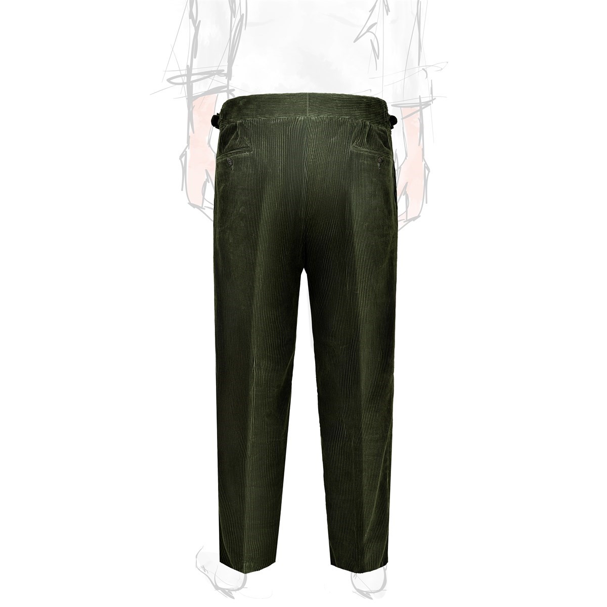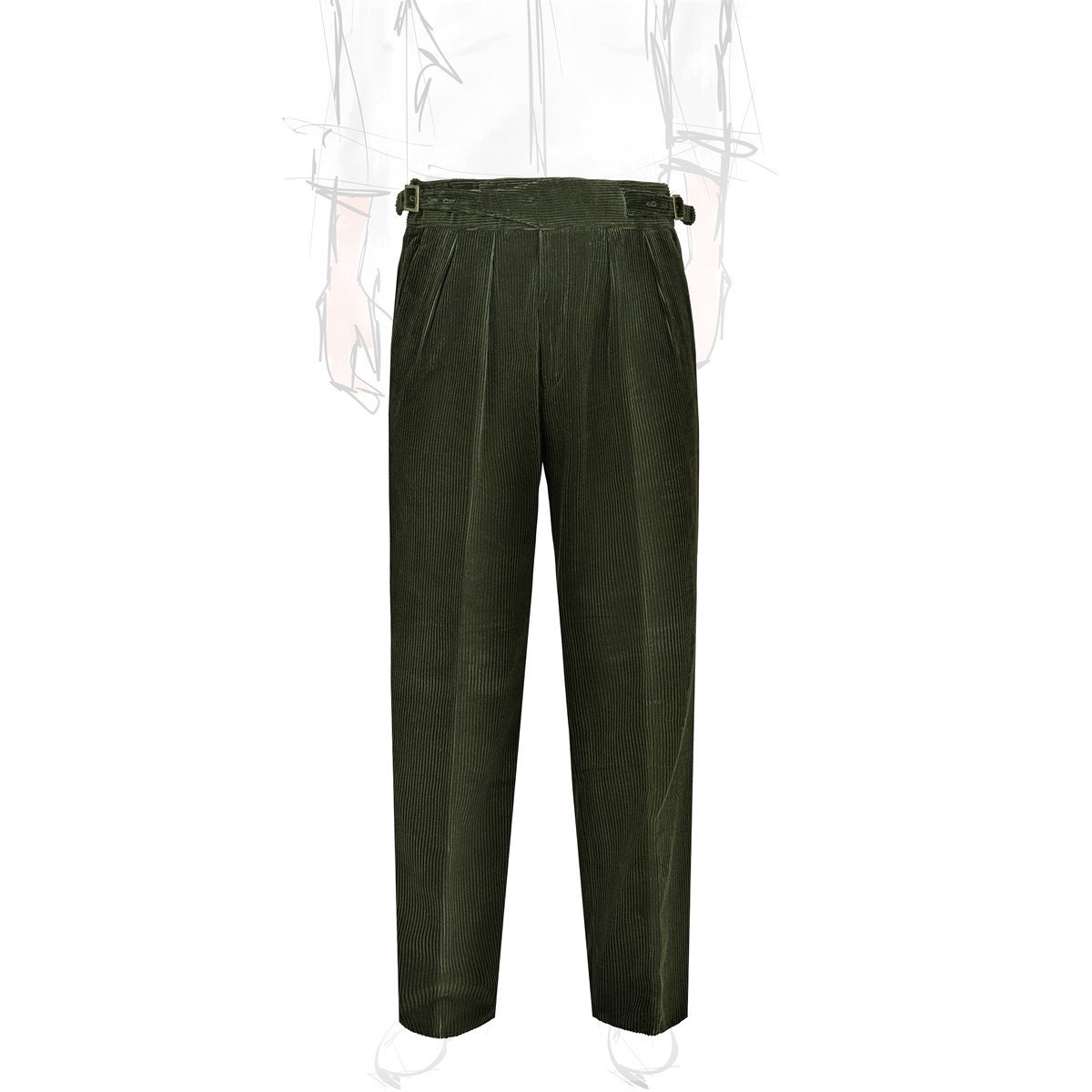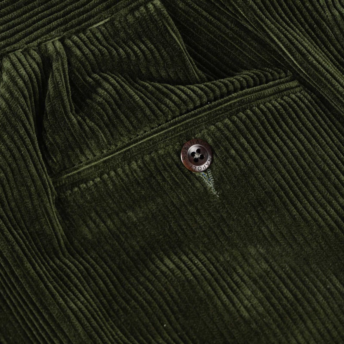 The manny trousers from the Autumn/Winter 2025 collection reinterpret the iconic style of Gurkha military uniforms with contemporary elegance. Made from a fine green corduroy in pure cotton, these trousers combine sharp lines and tailored details with a modern and comfortable fit. The corduroy, with its rich and textured feel, features a shimmering effect: the color shifts slightly depending on the light and the direction of the fabric, adding depth and dynamism to the garment. A product of Rubinacci’s artisanal excellence, each pair is designed for the man who seeks quality, character, and timeless style. The high waist with double buckles and adjustable side tabs enhances the silhouette and adds a distinctive touch, while the corduroy structure makes them ideal for facing the colder months with both style and comfort.