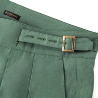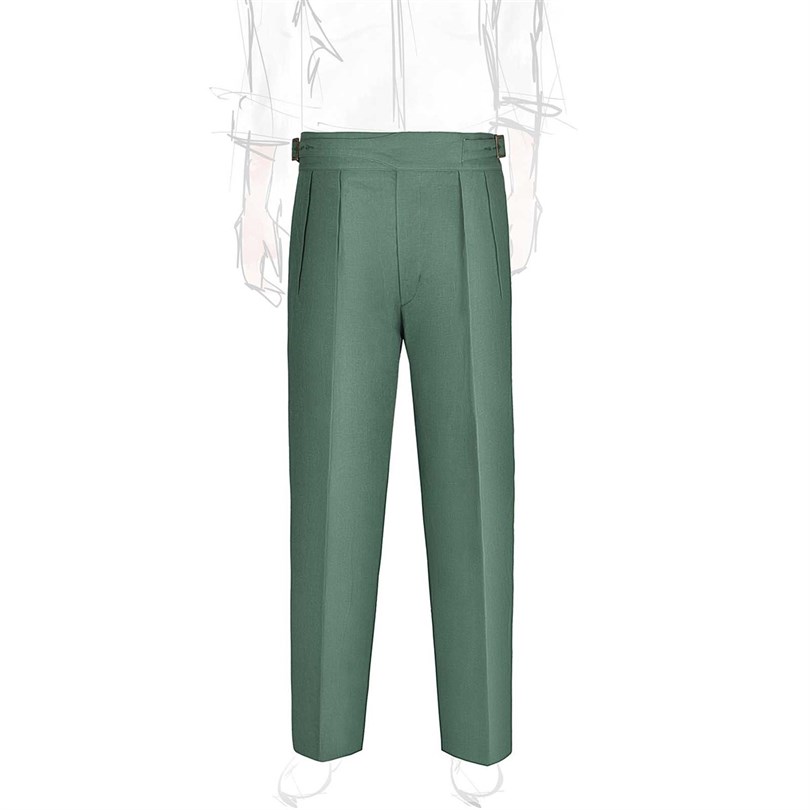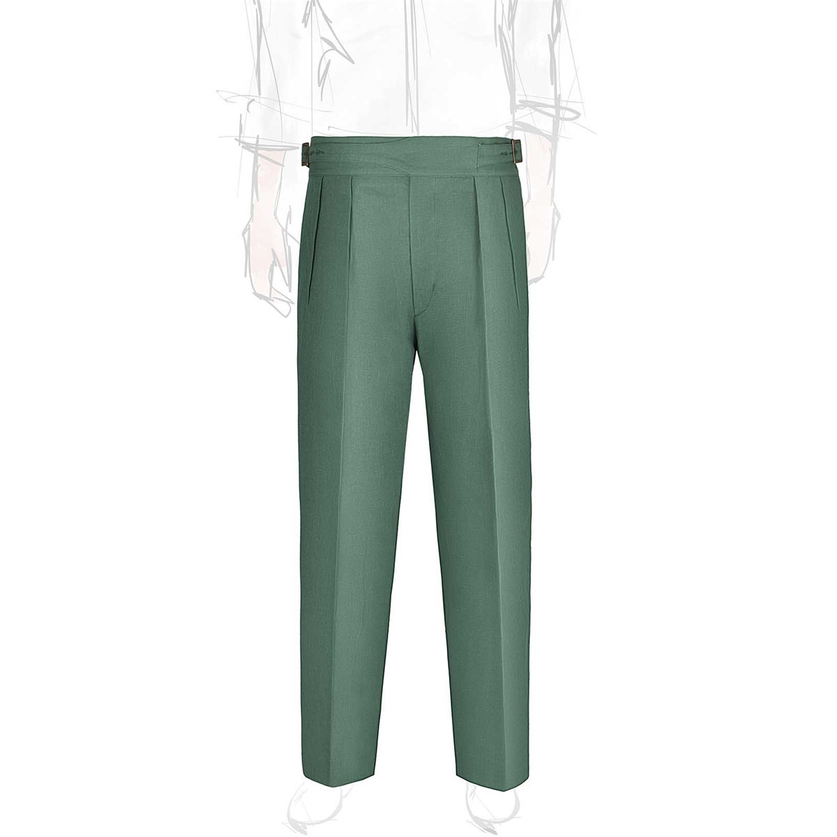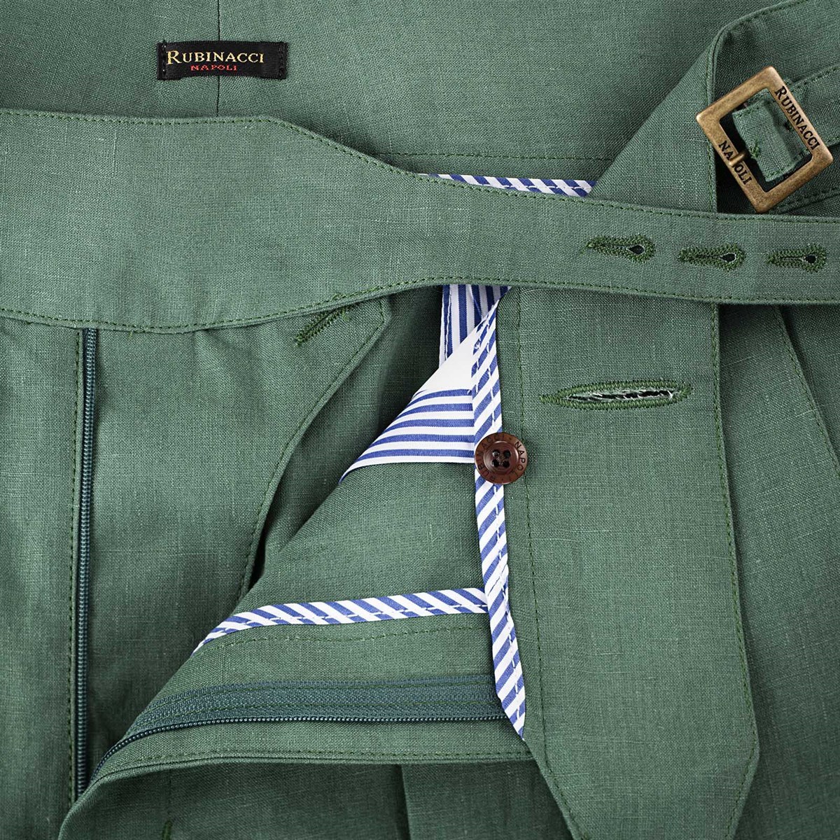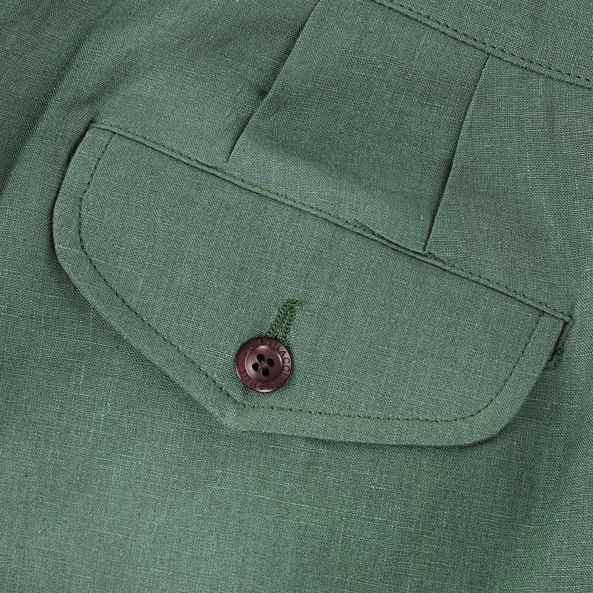 The hems of these trousers are intentionally unfinished, allowing for customization to achieve your desired length. Whether you dress them up with a blazer or keep it casual with a simple t-shirt, our Green Linen Manny Trousers are a versatile addition to your wardrobe that effortlessly combines heritage and contemporary style. Embrace a timeless look with this essential piece from Rubinacci.