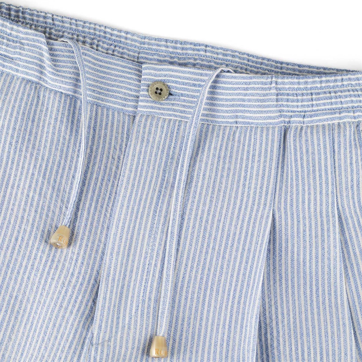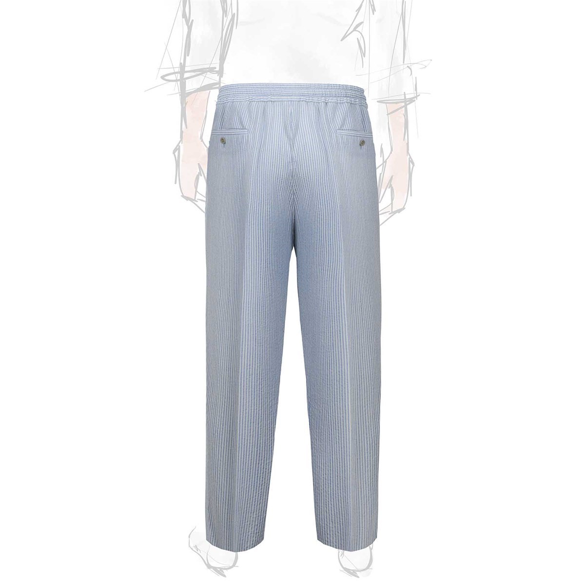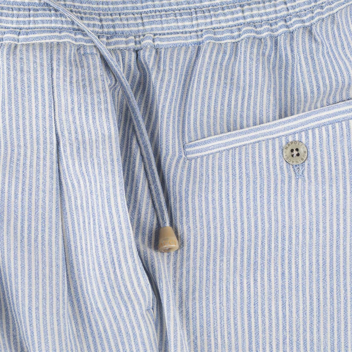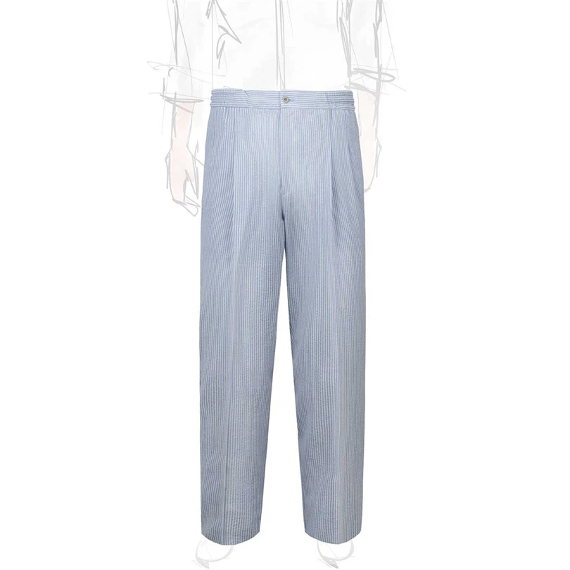 Whether you're traveling, enjoying a leisurely day out, or simply lounging, these pants are an essential addition to any wardrobe. Experience the luxurious feel and sophisticated design of our Light Blue Striped Wool and Silk Leisure Pants today.