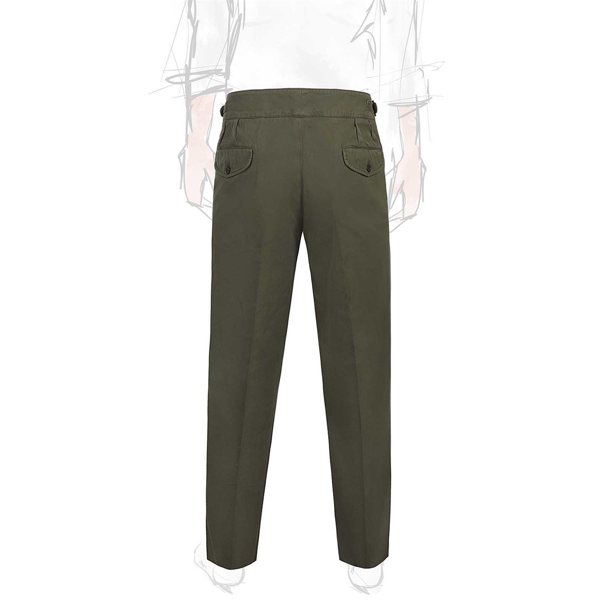 With their timeless appeal, the Military Green Cotton Manny Trousers are not just clothing; they are a statement piece that connects you to a rich history of style and resilience. Whether paired with a crisp shirt or a relaxed t-shirt, these trousers are sure to become a favorite in your wardrobe. Embrace the blend of tradition and contemporary fashion with this essential piece.