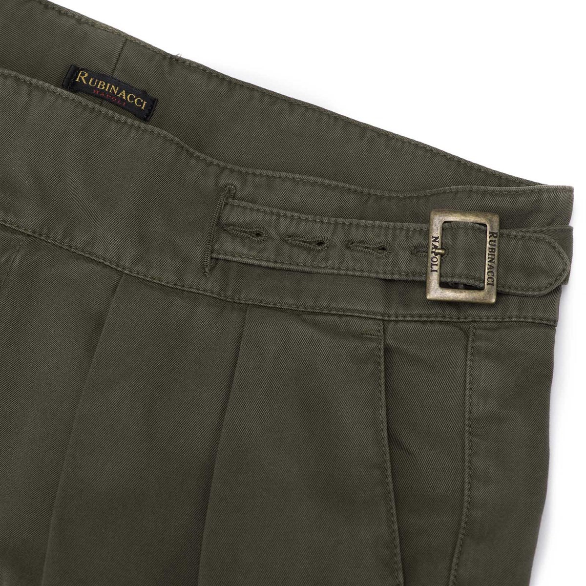 Crafted from 100% heavy cotton twill in a rich khaki hue, these trousers are designed for both style and functionality. The high waist provides a flattering silhouette, while the innovative design features two adjustable tabs that allow for a custom fit without the need for a belt. This ensures comfort and versatility, making them ideal for a variety of occasions, from casual outings to more formal events.