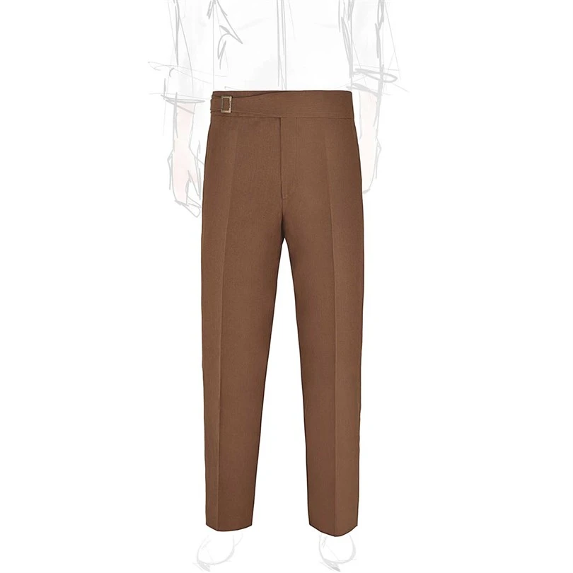 Featuring an elegant 5 cm high belt with a side buckle and button closure, these trousers reflect refined tailoring without the bulk of pleats, ensuring a streamlined silhouette. The regular fit provides versatility, allowing you to dress them up for formal occasions or keep it casual for everyday wear.