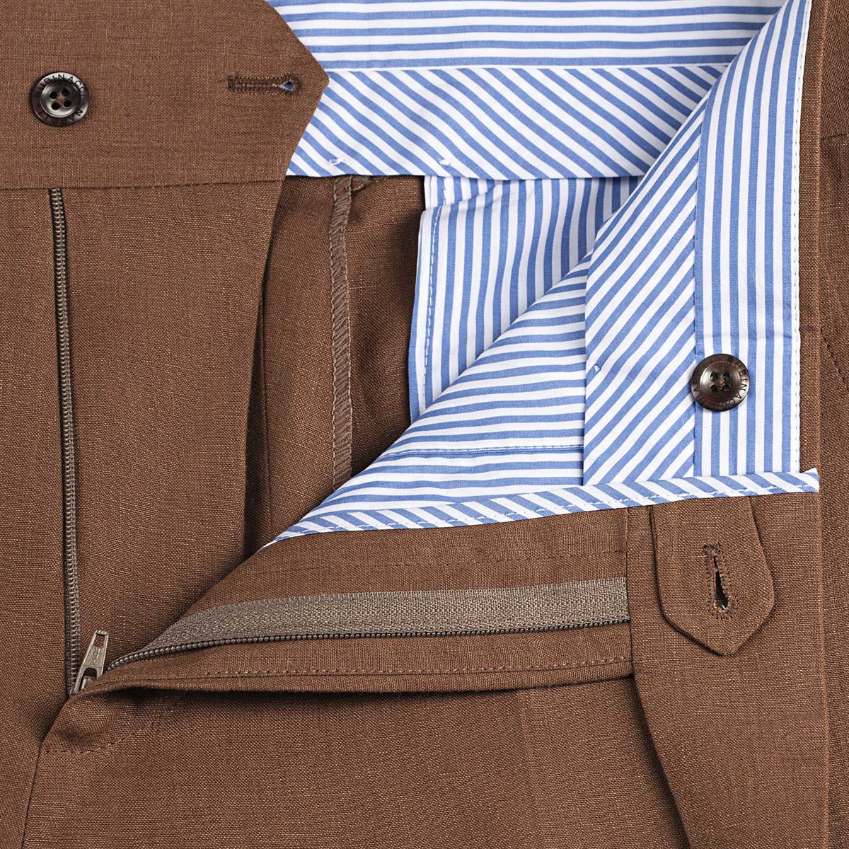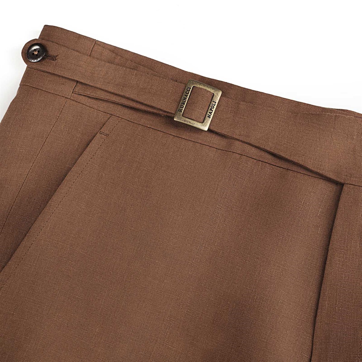 With unfinished hems, you have the option to customize the length to your preference, ensuring a perfect fit. Whether you're heading to a business meeting or enjoying a weekend outing, the Tobacco Linen Genny Trousers are a chic addition to your wardrobe. Embrace effortless elegance and make a statement with these modern trousers from Rubinacci.