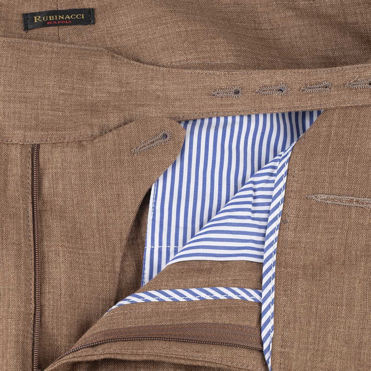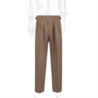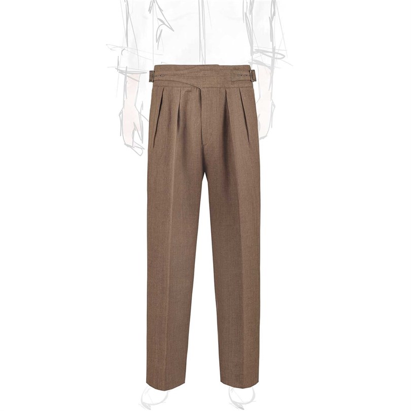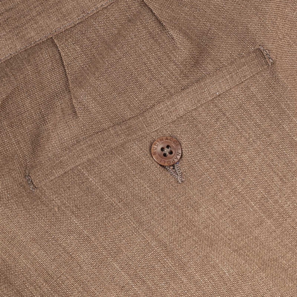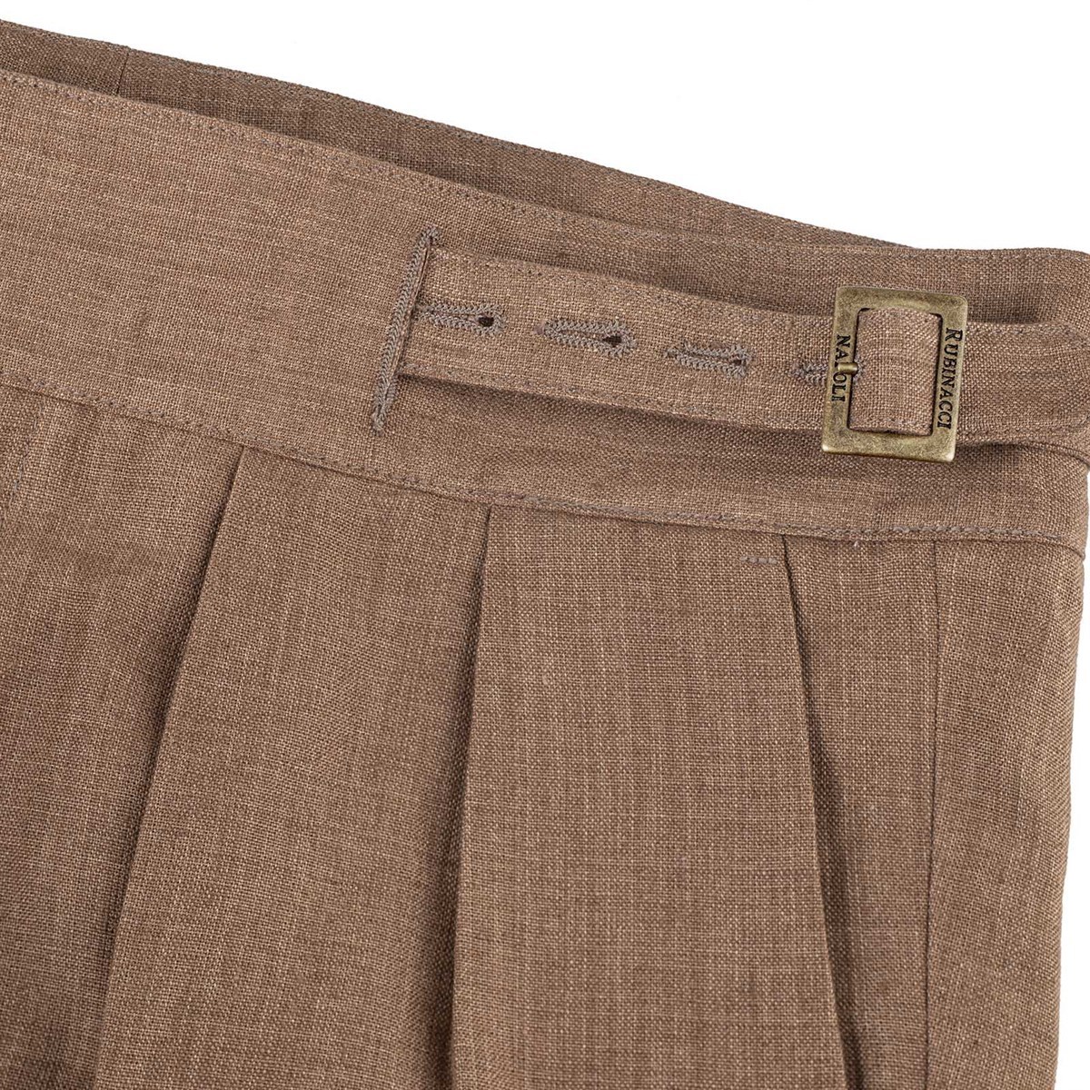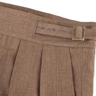 Tailored in Italy from a vintage linen with a wide and slightly higher waist-band, which became brand’s signature cummerbund-style, they feature extended side adjusters and double pleats through the front. While these create plenty of room through the waist, the tapered leg allows for a slim fit, creating a polished overall finish.
