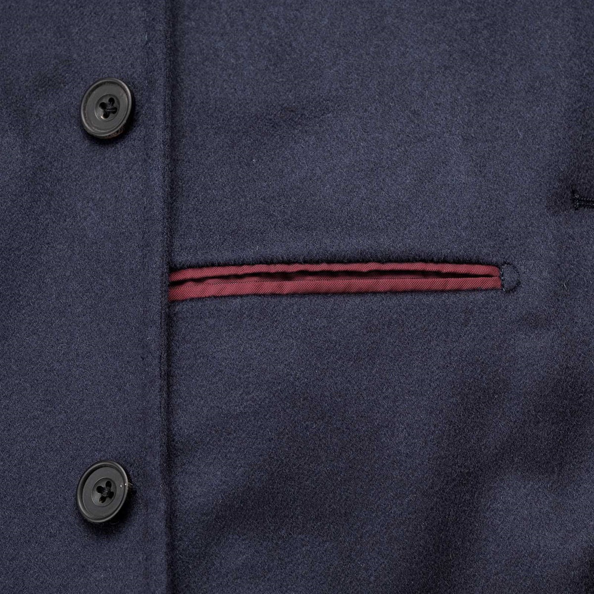 Characterized by a clean line and a regular fit, the three-roll-two jacket is completely unlined and features a classic lapel, flap pockets and a chest pocket, for an essential yet refined aesthetic. The internal sartorial details, such as hand-finished seams and contrast bordeaux piping, reflect the artisanal care typical of the Rubinacci Maison. The soft, unstructured construction of this jacket enhances the natural fluidity of the cashmere, delivering both lightness and warmth.