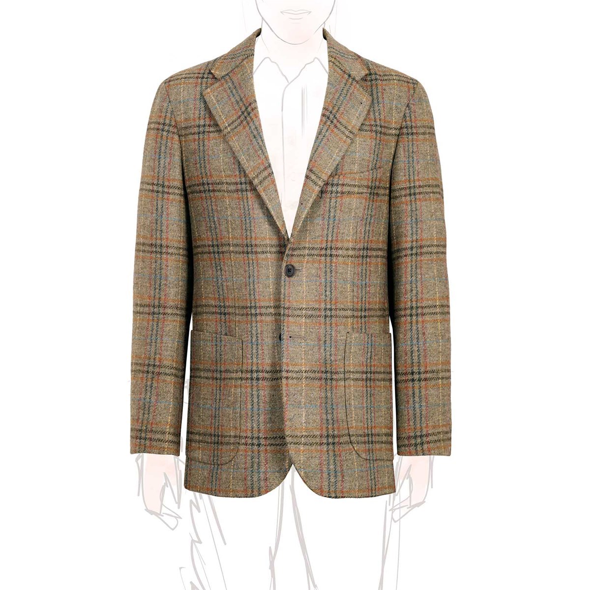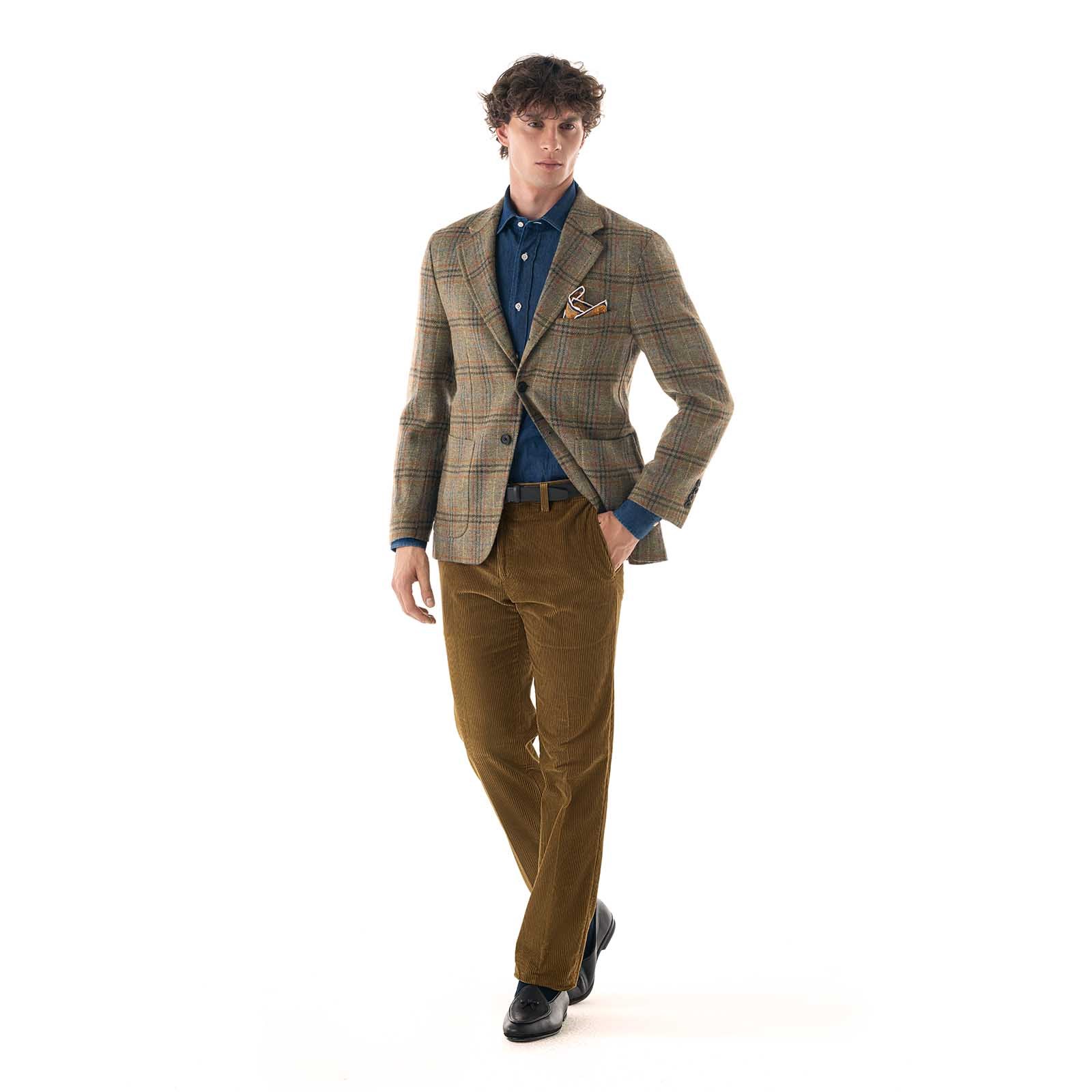 Designed for the man who wishes to stand out with personality, this three-roll-two jacket is fully lined and features a classic lapel, patch pockets, and a chest pocket, blending the timeless taste of Neapolitan tailoring with the originality of the check motif. The internal sartorial details, such as hand-finished seams and the contrasting bordeaux-colored lining, confirm the accuracy and artisanal mastery of Maison Rubinacci. Its soft construction enhances the fluidity and lightness of the wool, ensuring comfort and freedom of movement, without sacrificing impeccable elegance. The sleeve buttonholes are closed to allow possible length adjustments.